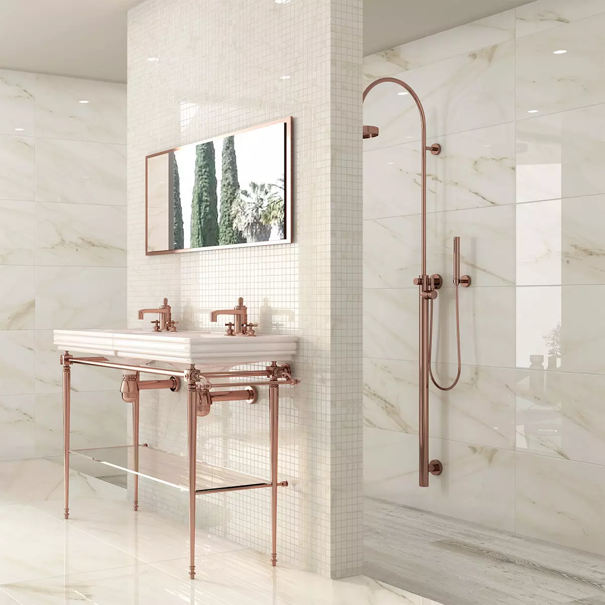 Polished finish controllable via Roughness for mirror‑like floors or satin wall panels; Height supports subtle relief.