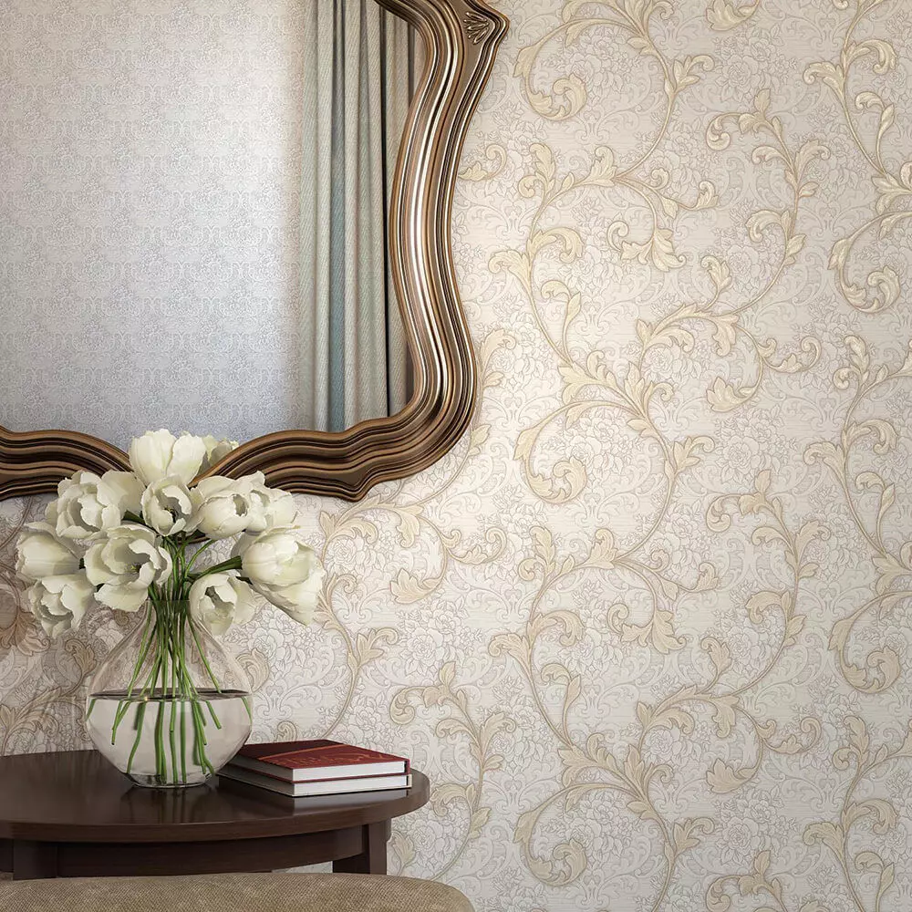 An elegant champagne‑ivory baroque wallpaper featuring flowing acanthus scrolls and fine florals with a delicate glitter accent, designed as a seamless tile for classic luxury interiors and soft glam spaces. The warm neutral palette pairs beautifully with brass, walnut, and velvets, adding refined depth without overpowering furnishings in foyers, dining rooms, and boutique hotels. Package includes 4K+ seamless JPEG and PNG, plus a calibrated grayscale bump/height map derived from the raised ornament to simulate subtle embossed relief and sparkle breakup in closeups. Compatible with Blender, 3ds Max, V‑Ray, Corona, Cycles, Unreal/Unity—plug in as Base Color, set bump 0.2–0.35, and use included real‑world scale notes for consistent results across engines and large‑format print. The pattern tiles cleanly for full‑wall coverage, enabling fast, artifact‑free staging for client presentations and production renders with luxurious finish.