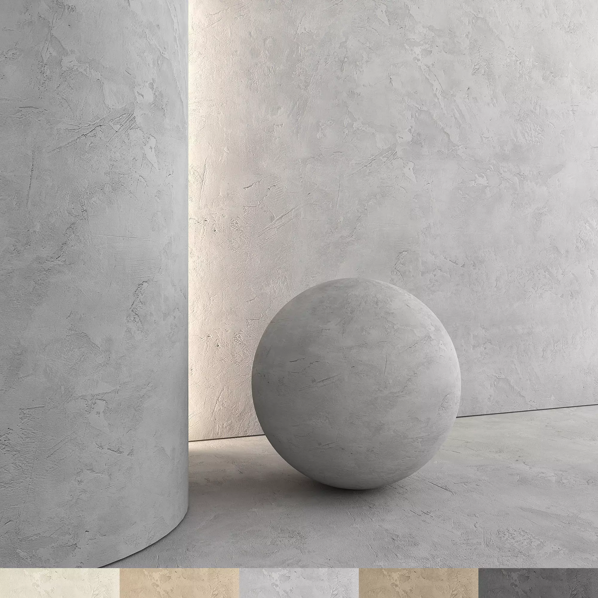 5 decorative concrete materials.High quality material and textures. Detailed enough for close-up rendering.PBR textures. Resolution 4096x4096 pixels.