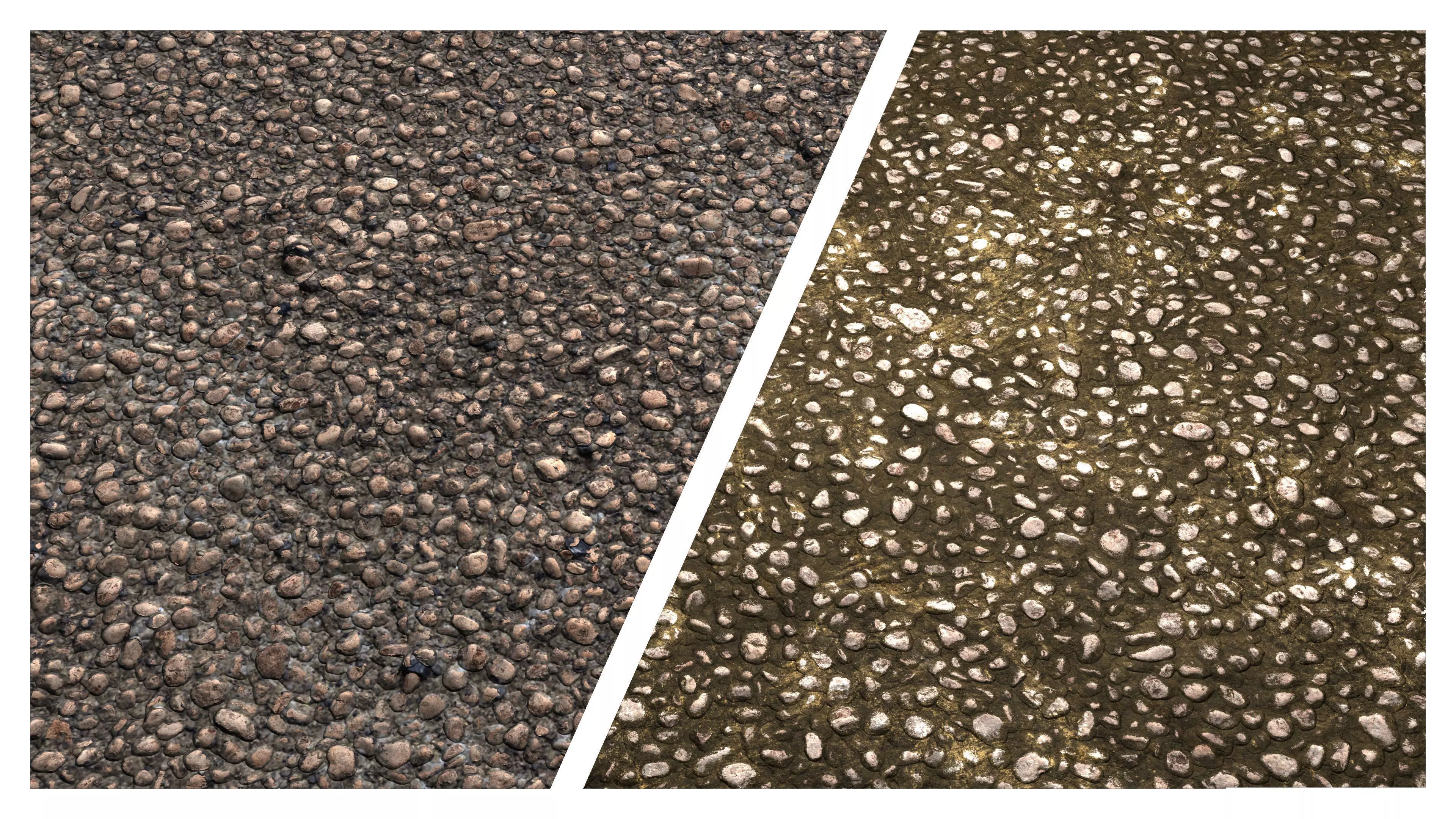Built using a full Physically Based Rendering (PBR) workflow at 8K resolution, these textures include realistic aggregate detail, surface wear, and roughness variations that respond naturally to lighting in modern render engines.