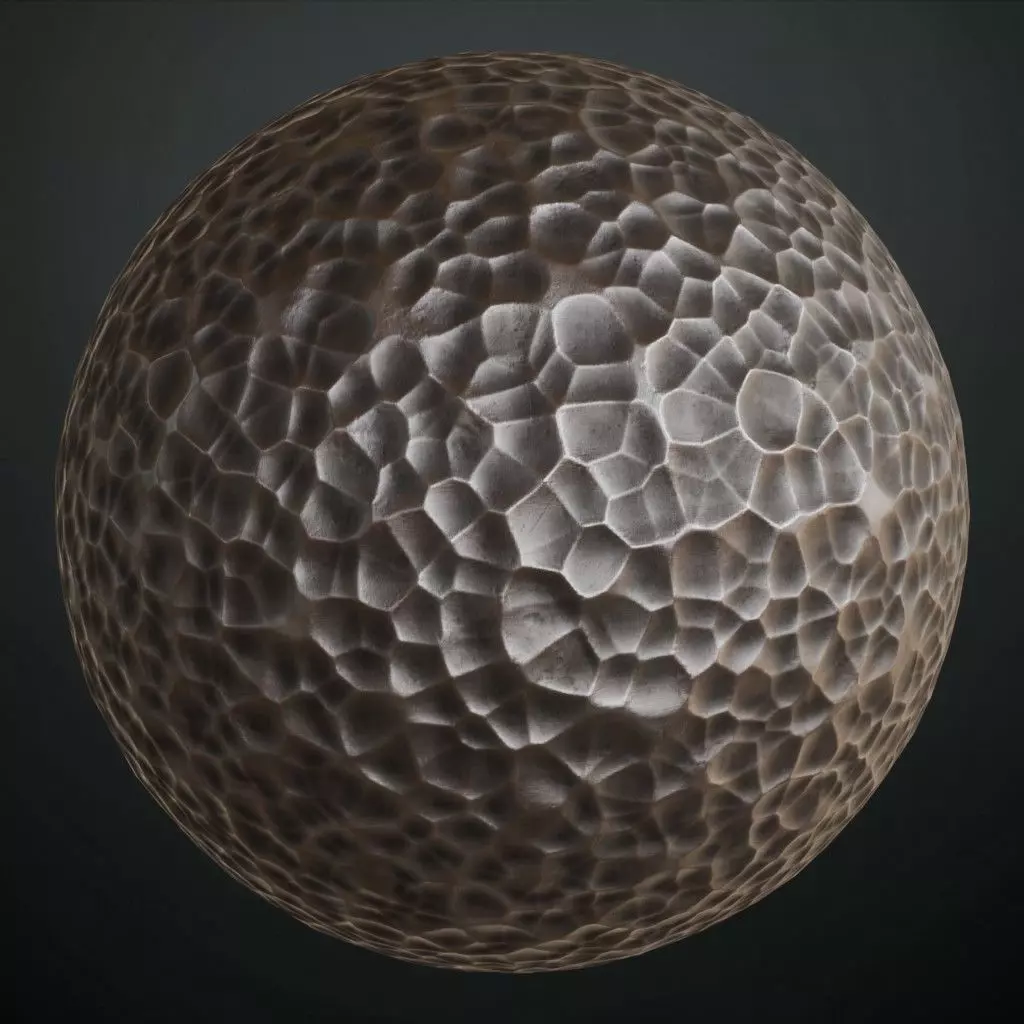 This is a PBR Texture Pack of Fine-Dimpled Hand-Hammered Metal. All the maps such as BaseColor, Normal, Roughness, Height, and Metallic are provided as per requirement.
