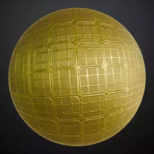 This is a high-quality PBR Texture Pack of a Golden Sci-Fi Floor Transparent surface.All essential Maps, including BaseColor, Normal, Roughness, Height, Metallic, and Opacity, are provided to deliver a highly realistic and technologically advanced finish. This material features a sophisticated array of paneling, consisting of a structured grid of octagonal and square sections with a fine-mesh perforated interior. The premium golden luster combined with the transparency map makes it an ideal choice for luxury spacecraft walkways, high-tech command center flooring, or opulent futuristic glass-and-metal architectural elements.