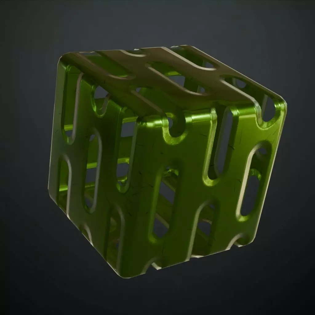 This is a high-quality PBR Texture Pack of a Green Shine Metal Grill Transparent surface. All essential Maps, including BaseColor, Normal, Roughness, Height, Metallic, and Opacity, are provided to deliver a highly realistic and polished industrial finish. This material features a unique pattern of vertical oblong capsule perforations precisely cut into a vibrant, high-gloss green metallic sheet. The polished surface reflects light with a brilliant shine and is detailed with realistic micro-scratches and subtle surface wear. This transparent grill is an exceptional choice for modern architectural facades, high-tech cooling vents, luxury interior partitions, or stylized futuristic environment assets.