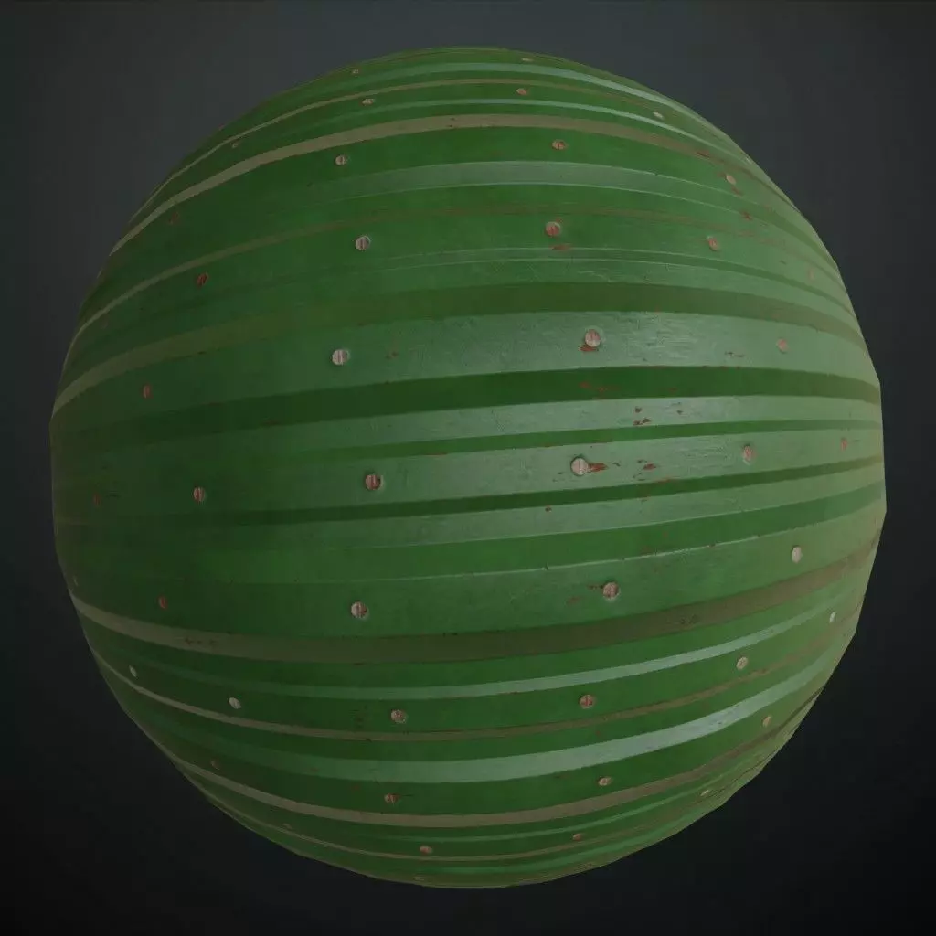 This is a high-quality PBR Texture Pack of a Green Steel Container surface. All essential Maps, including BaseColor, Normal, Roughness, Height, and Metallic, are provided to deliver a highly realistic and industrial finish. This material features the iconic horizontal corrugated ribbing found on standard shipping containers, coated in a deep industrial green paint. The surface is detailed with realistic vertical rivets, subtle edge wear, and scattered scuffs that reveal the underlying metal substrate. This texture is an exceptional choice for shipyard environments, logistics hubs, modular housing units, or heavy-duty industrial storage assets.
