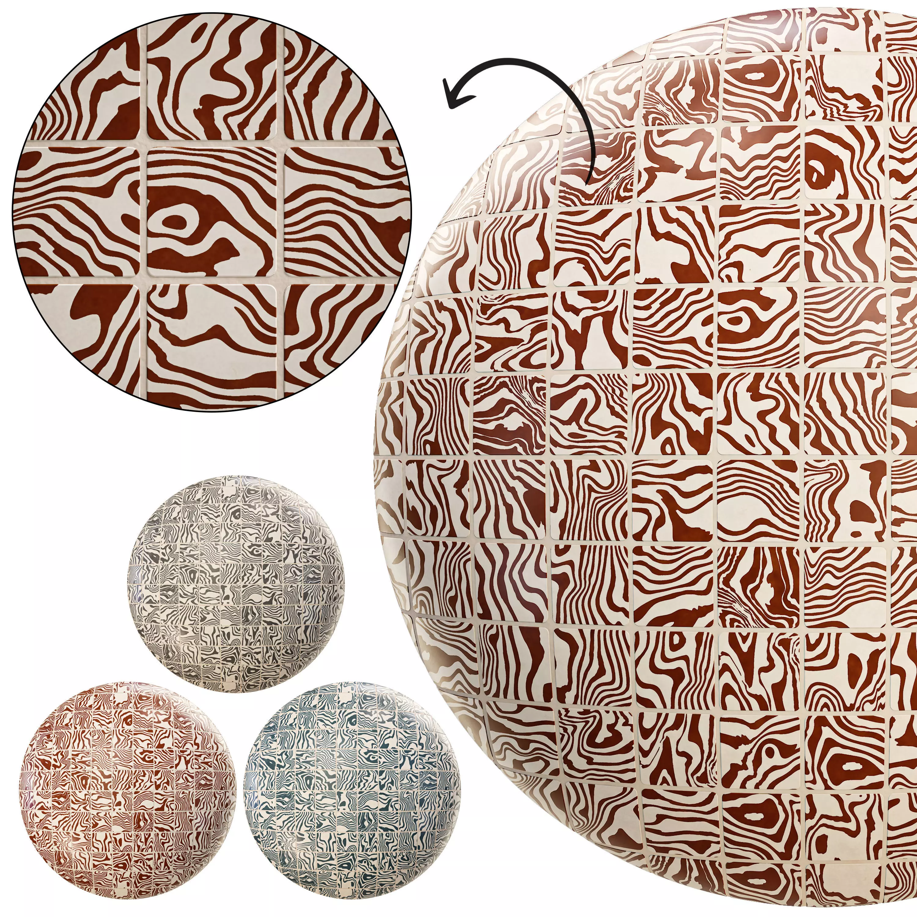 Inspired by the art of nerikomi, the printed glazed tile captures the vivid colour and expressive movement of Henry Holland Studio’s ceramic works.