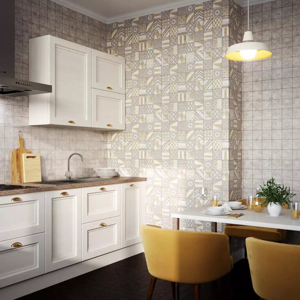 A kitchen‑ready patchwork of small “ceramic” squares combining chevrons, florals, circles, and stripes in warm beige and taupe over soft ivory grout, designed as a seamless tile for backsplashes and feature walls . Subtle sand‑grain emboss and rounded grout edges create a realistic tile feel that stays crisp in closeups and cohesive in full‑wall renders . Package includes 4K+ seamless JPEG and PNG, plus a calibrated grayscale bump/height map derived from the grout recess and grain to deliver convincing micro‑shadowing and light breakup . Optimized for Blender, 3ds Max, V‑Ray, Corona, Cycles, Unreal/Unity—use as Base Color, set bump 0.2–0.38, and follow included meter‑scale notes to keep “tile” size consistent across engines and print . Tiles cleanly for continuous runs around corners or full accent walls, ideal for cafes and modern classic kitchens .