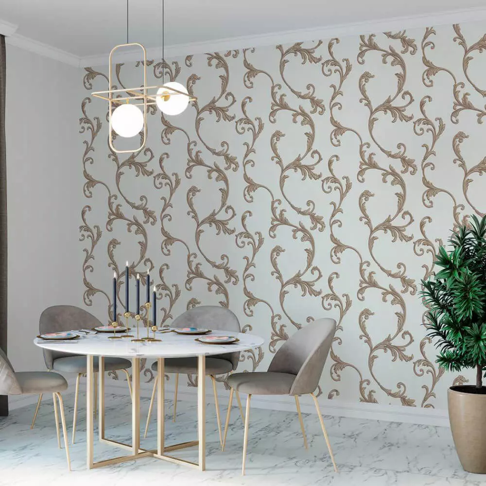 A sophisticated ivory wallpaper adorned with flowing acanthus scrolls in warm antique gold, crafted as a seamless tile to bring classic luxury to dining rooms, foyers, and boutique hospitality spaces. The design features delicate background damask grain and subtle metallic sparkle for depth that reads beautifully in both closeups and wide shots. Package includes 4K+ seamless JPEG and PNG, plus a calibrated grayscale bump/height map derived from the raised ornament to add believable embossed relief and specular breakup. Ready for Blender, 3ds Max, V‑Ray, Corona, Cycles, Unreal/Unity—use as Base Color, set bump 0.2–0.35, and follow included meter‑scale notes for consistent results across engines and large‑format print. The pattern tiles invisibly for full‑wall coverage and efficient UVs, enabling fast, artifact‑free staging for production renders and client presentations.
