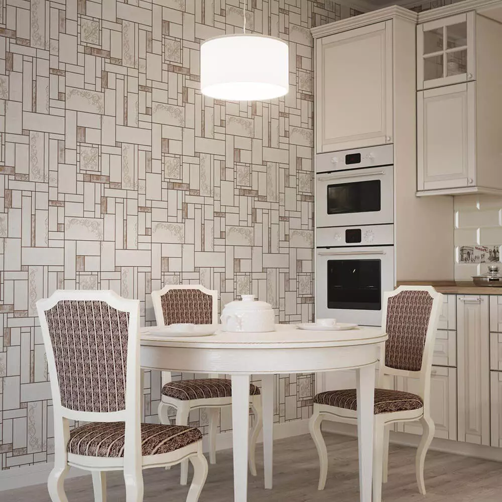 A clean ivory and taupe geometric panel wallpaper composed of interlocking rectangles and slim borders, accented with delicate scroll motifs and light plaster grain for a refined contemporary‑classic look. The warm neutral scheme suits kitchens, dining rooms, and transitional interiors, pairing easily with white cabinetry, stone counters, and natural woods. Package includes 4K+ seamless JPEG and PNG, plus a calibrated grayscale bump/height map derived from the panel relief for gentle shadowing and believable material depth in closeups. Optimized for Blender, 3ds Max, V‑Ray, Corona, Cycles, Unreal/Unity—use as Base Color, set bump 0.15–0.3, and follow included meter‑scale notes for consistent results across engines and large‑format print. The pattern tiles invisibly for full‑wall coverage, enabling fast staging and artifact‑free production renders or printable wall panels.