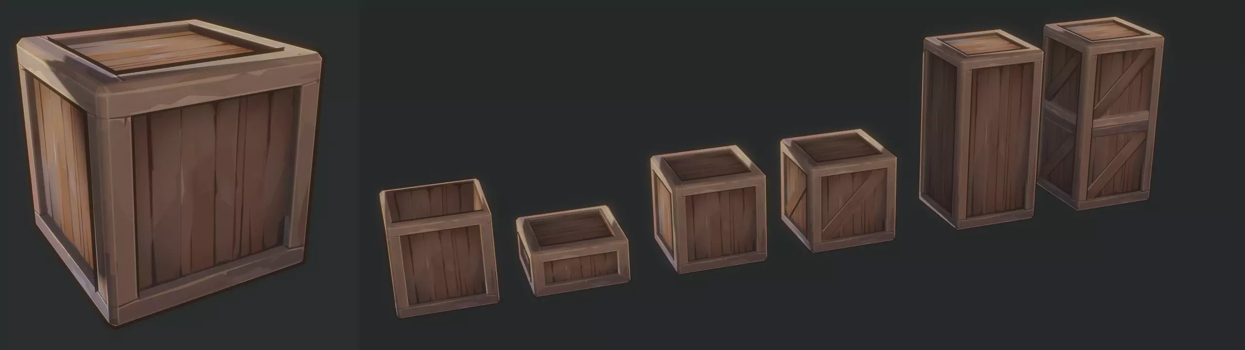 Several handpainted boxes in a tasty style, optimized for the game. Boxes in different states, classic\frozen\overgrown\charred. Outline can be removed if necessary. Enjoy! If there is interest in this style, I will release more!