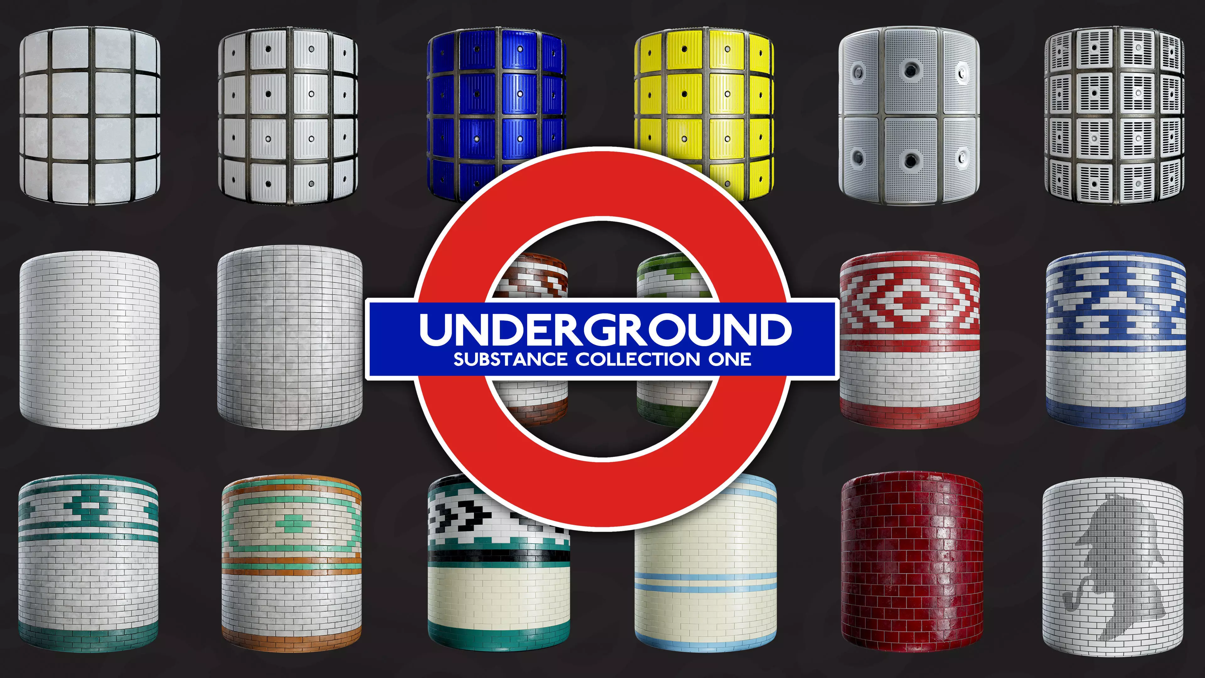 This London Underground Substance Collection includes 4 Substance materials which can be used to create various wall tiles from several stations ranging from disused to old to new. Included are the .sbsar files - you can use free Substance Player software to export bitmaps from these files.