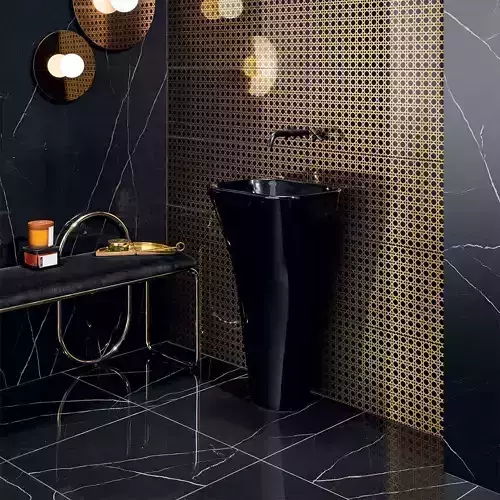 Presenting a meticulously crafted 3D model of a luxury black marble pedestal sink, perfect for contemporary or upscale bathroom visualizations. This model features a bold, sculptural form inspired by high-end interior design trends and crafted from sleek black marble with realistic veining.