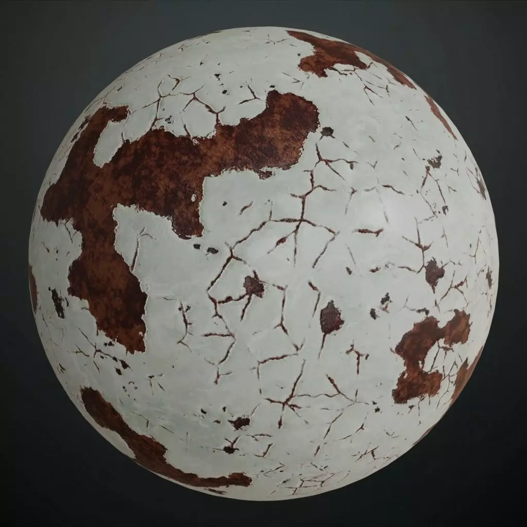 This is a high-quality PBR Texture Pack of a Machinery Chipped Paint surface. All essential Maps, including BaseColor, Normal, Roughness, Height, and Metallic, are provided to deliver a highly realistic and weathered industrial finish. This material features a thick, pale green industrial coating that has undergone significant environmental stress. The surface is characterized by large, irregular areas of chipped paint revealing a dark, oxidized metal substrate underneath, complete with intricate cracking and surface grime. This texture is an ideal choice for heavy industrial machinery, aged factory equipment, weathered shipping containers, or derelict urban environment assets where a high degree of urban decay and realistic wear is required.