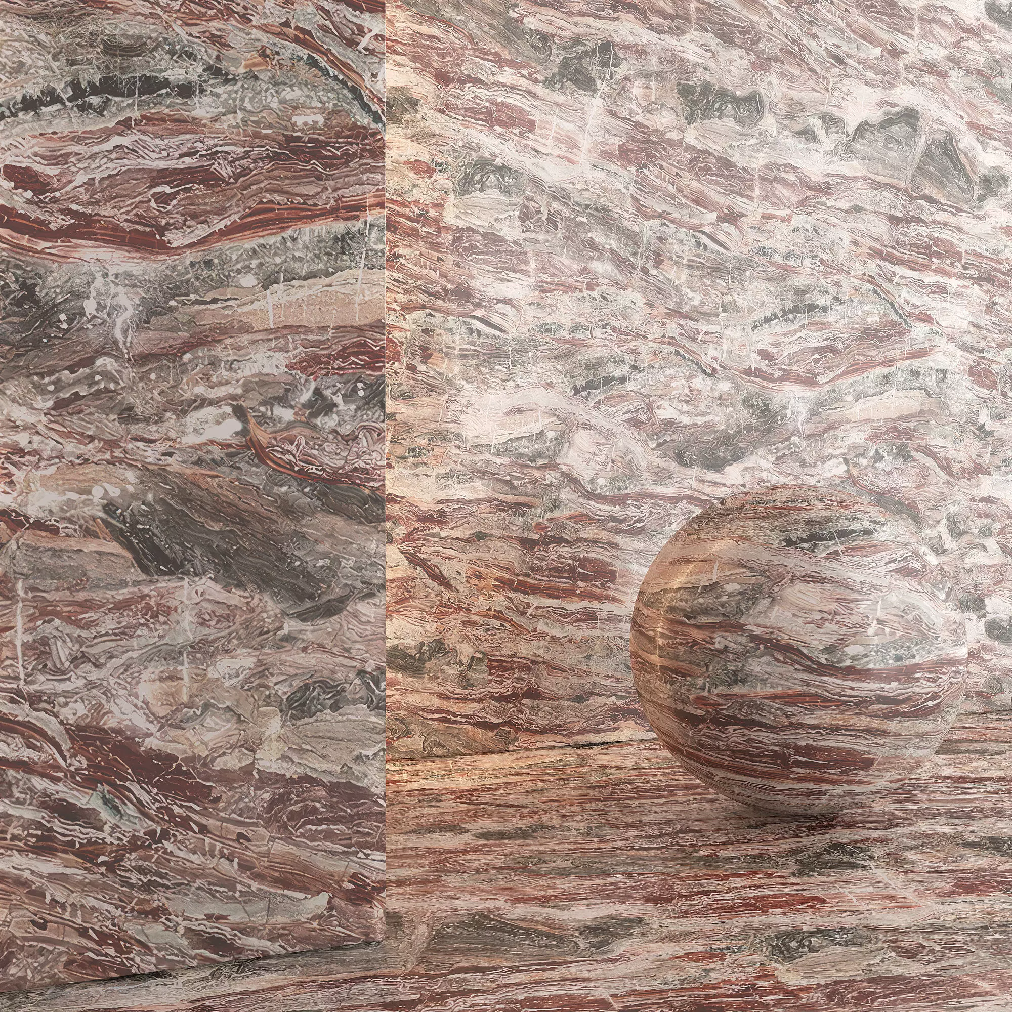 Natural stone Marble.Seamless texture, material and 3d model of tiles of different sizes.Detailed enough for close-up rendering.Most textures - PBR. Resolution 8192x8192 pixels.
