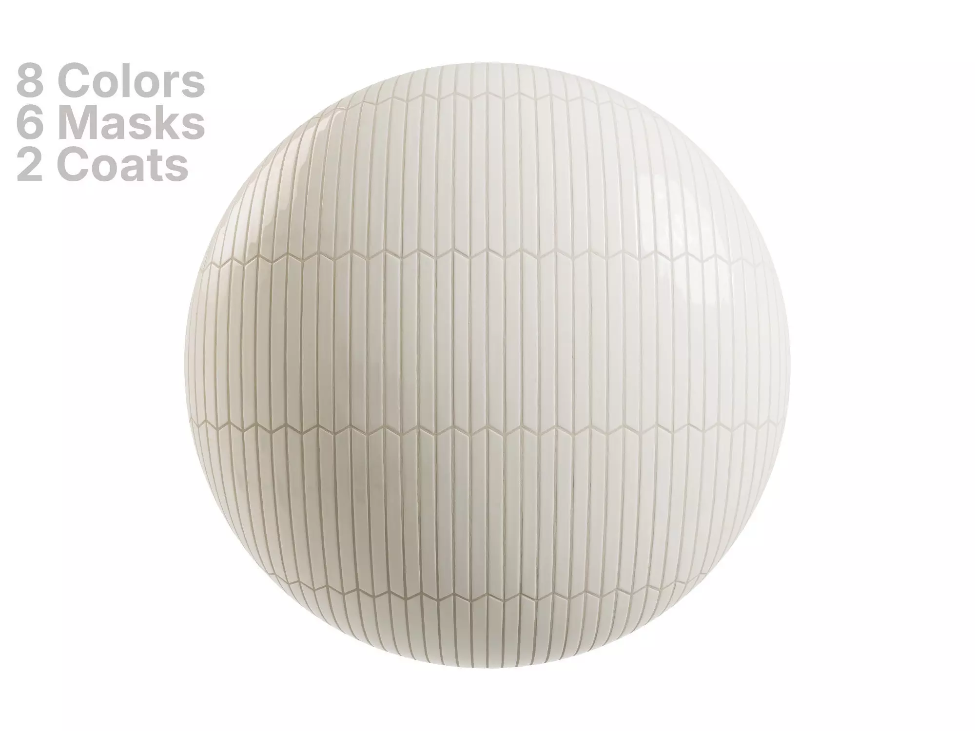 The package includes 8 diffuse variations with matching grout tones, and a flexible color base that works out-of-the-box or as a starting point for custom looks.