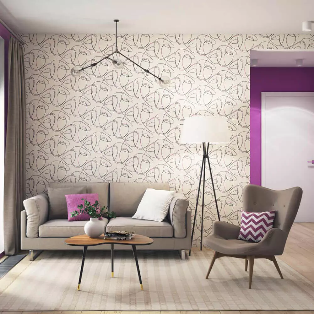 What’s includedSeamless wallpaper featuring looping black and magenta linework over a softly textured white ground for fresh, modern living spaces.
