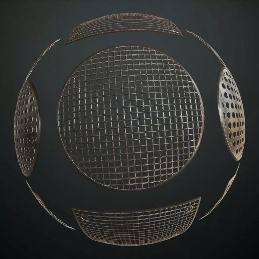This is a PBR Texture Pack of Multi-Pattern Industrial Wire Mesh Grill. All the maps such as BaseColor, Normal, Roughness, Height, Metallic, and Opacity are provided as per requirement.