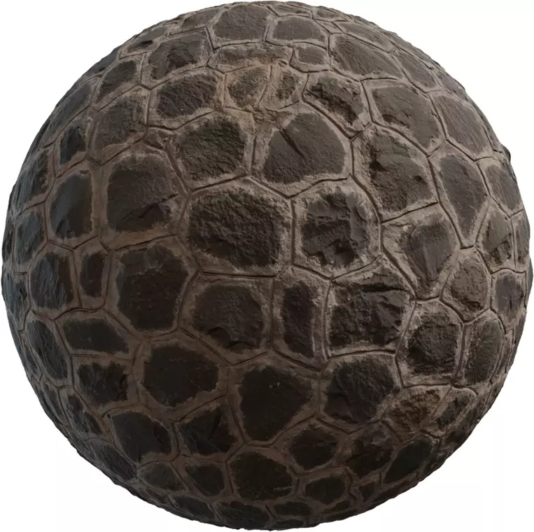 This is a premium quality Organic Polygon Stone Floor PBR material featuring randomly shaped stones forming a natural interlocking pavement pattern. Each stone has unique organic edges and slightly curved surfaces, giving a natural handcrafted feeling. This type of surface is great for ancient ruins, medieval architecture, fantasy RPG maps, old village footpaths, outdoor courtyards, temples, archaeological sites, or nature inspired walkways.