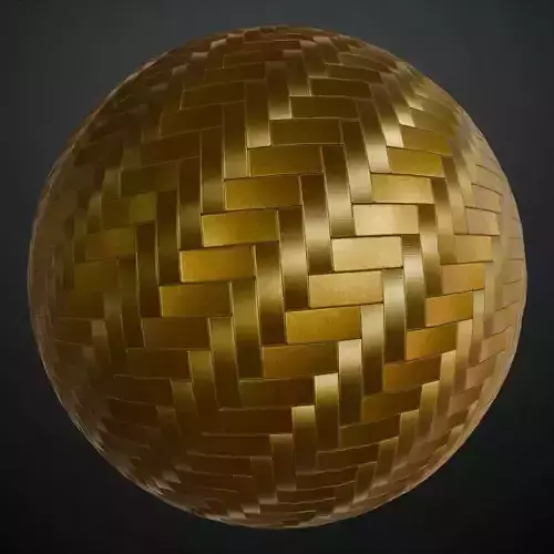 This is a PBR Texture Pack of Powered Metal Golden Design. This material features a premium architectural design consisting of an intricate herringbone or basket-weave pattern made of rectangular gold metallic tiles. The surface has a refined brushed finish with subtle directional grain, creating sophisticated light play and a high-end technical aesthetic. This texture is ideal for luxury interior wall cladding, decorative sci-fi flooring, or ornate futuristic paneling where a prestigious and complex geometric look is required. All essential maps, including BaseColor, Normal, Roughness, Height, and Metallic, are provided to ensure high-fidelity realism and premium light interaction in your 3D scenes.