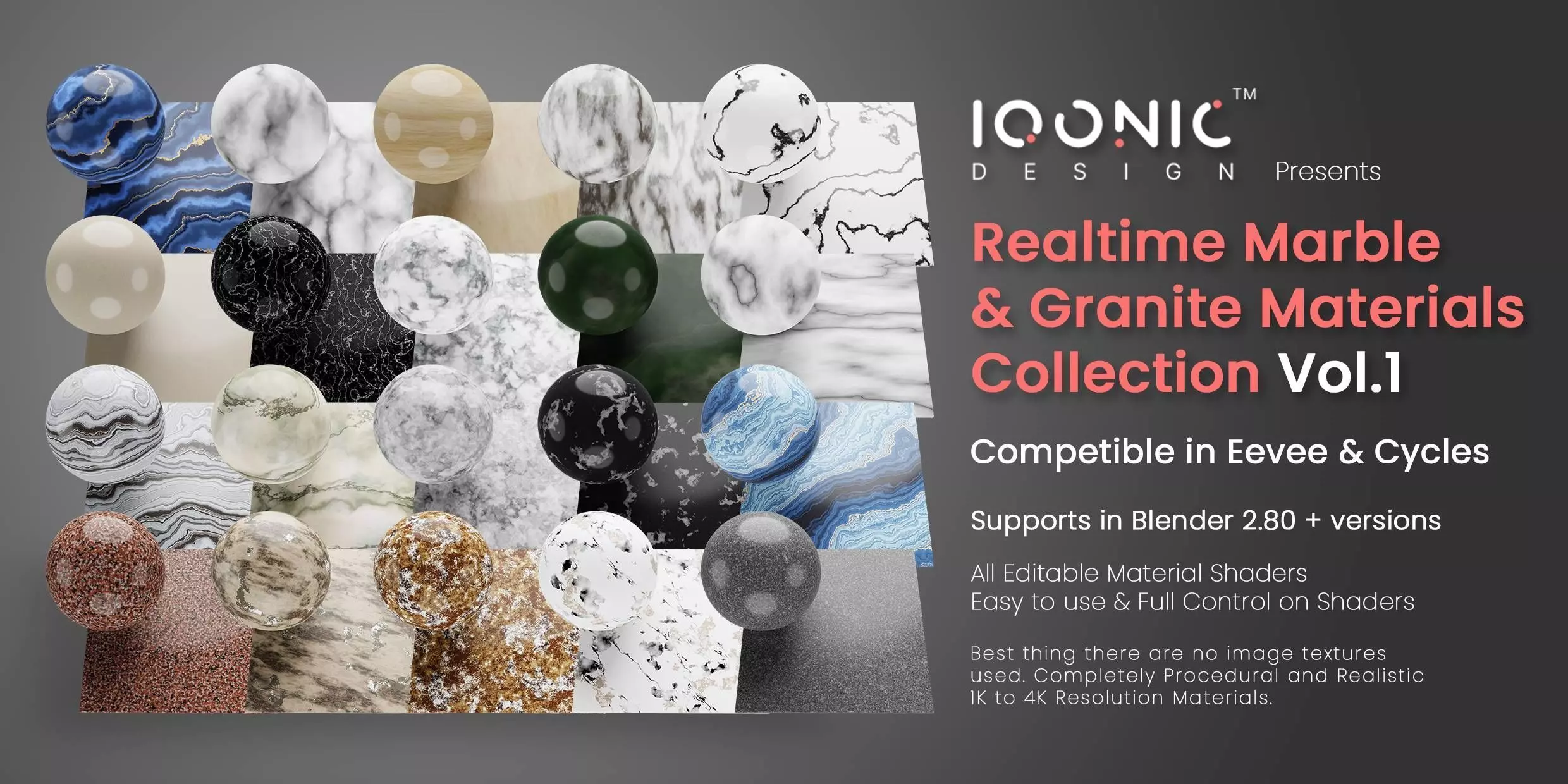 This collection of marble and granite materials is perfect for creating realistic renders in Cycles and Eevee.