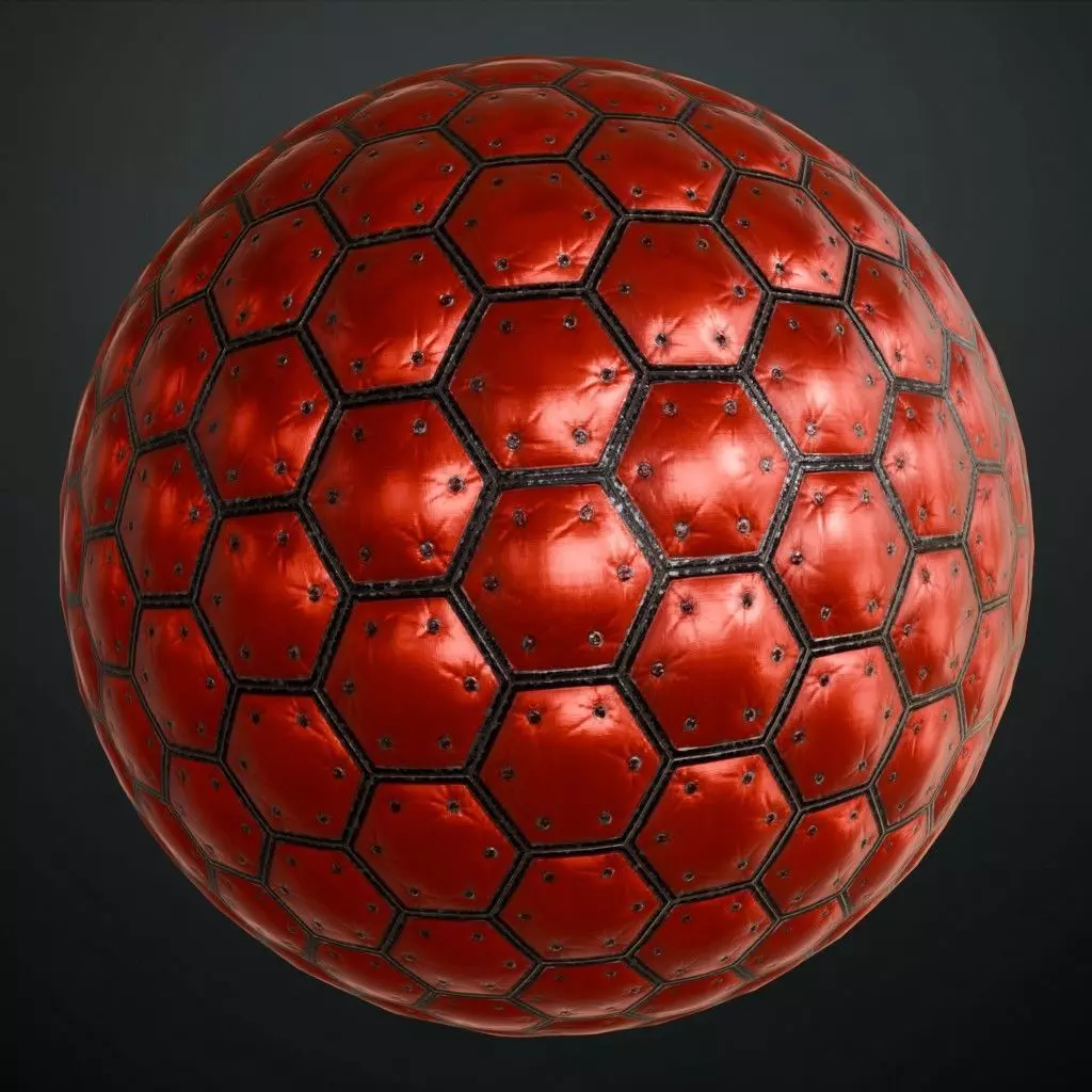 This is a PBR Texture Pack of Red Sci-Fi Wall. This material features a high-tech, hexagonal padded design with a vibrant red metallic finish and rivet detailing, perfect for futuristic starship interiors, high-security bunkers, or advanced tech environments. All essential maps, including BaseColor, Normal, Roughness, Height, Metallic, and Opacity, are provided to ensure high-fidelity realism and accurate light interaction in your 3D scenes.