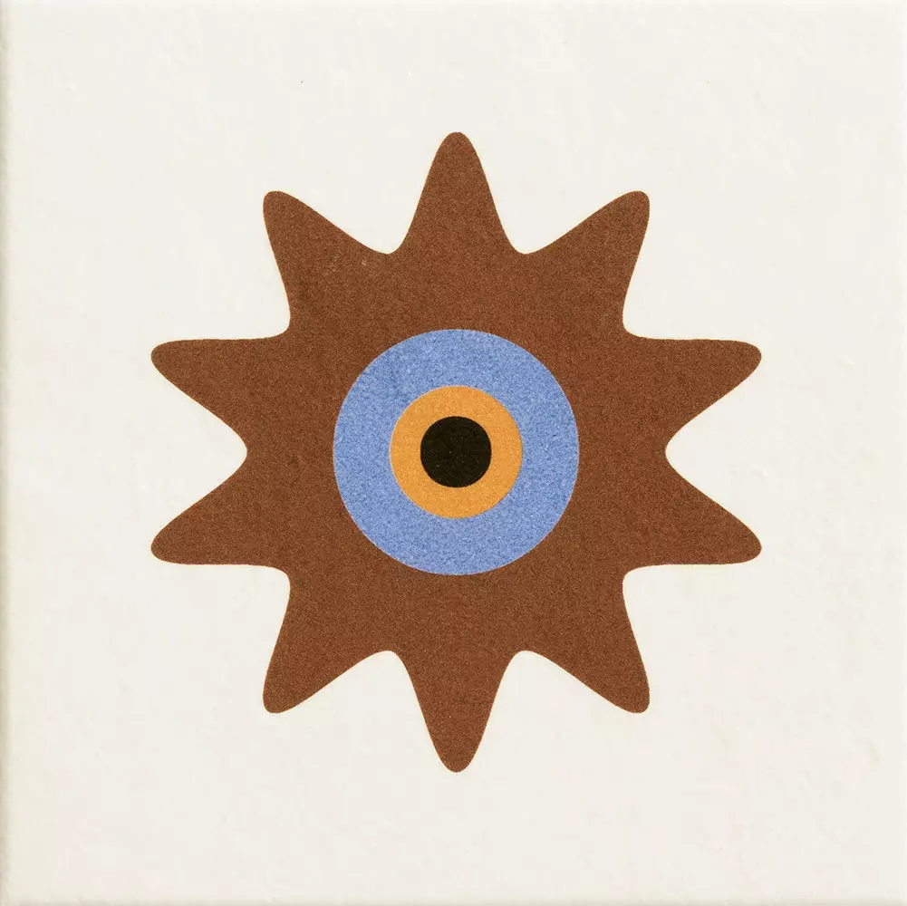 Add vibrant personality to your designs with this retro sunburst ceramic tile texture, perfect for injecting style into modern and vintage-inspired interiors or visualizations. This seamless 4K pattern features bold geometric motifs in warm brown, blue, and orange tones, making it ideal for eclectic homes, cafes, restaurants, and creative environments.
