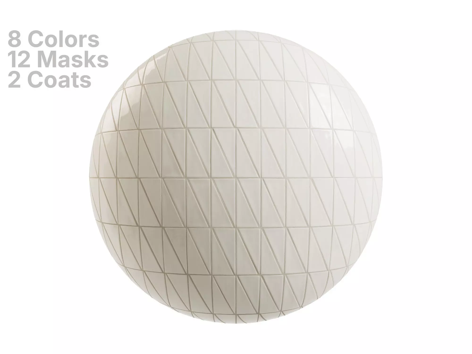 The package includes 8 diffuse variations with matching grout tones, and a flexible color base that works out-of-the-box or as a starting point for custom looks.
