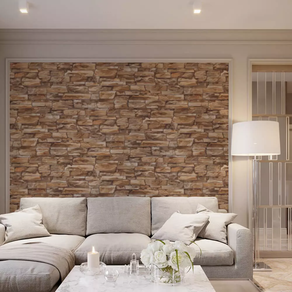 A realistic stacked‑stone wallpaper featuring irregular sandstone blocks in warm tan, caramel, and umber with soft mortar joints, crafted as a seamless tile for cozy living rooms, cafes, and feature walls . The surface shows natural stratification, chipped edges, and subtle grain that read convincingly in both closeups and full‑room renders . Package includes 4K+ seamless JPEG and PNG, plus a calibrated grayscale bump/height map derived from block relief and grout recesses to add depth, shadowing, and specular breakup . Compatible with Blender, 3ds Max, V‑Ray, Corona, Cycles, Unreal/Unity—use as Base Color, set bump 0.25–0.45, and follow included real‑scale notes to keep brick courses dimensionally accurate across engines and large‑format print . The pattern tiles cleanly for full‑wall coverage, enabling fast staging and artifact‑free production visuals in rustic or transitional interiors .