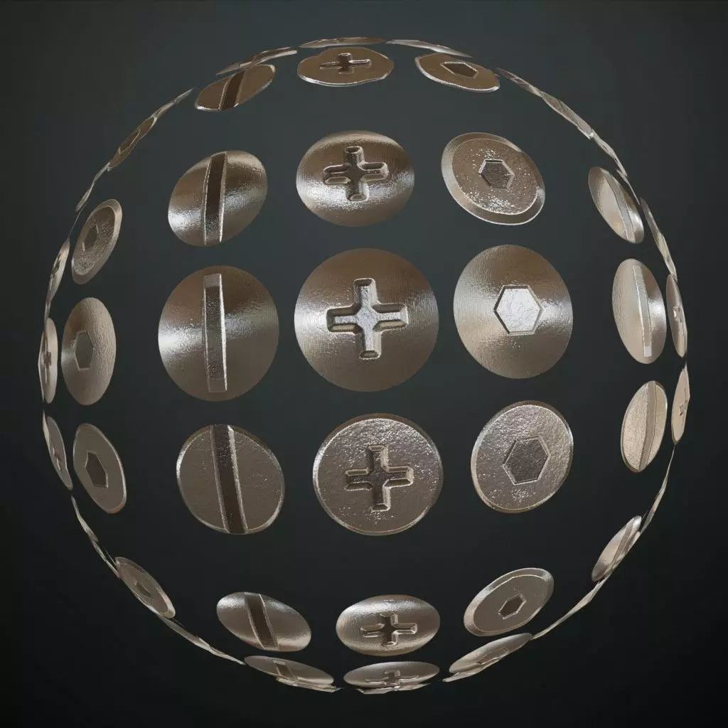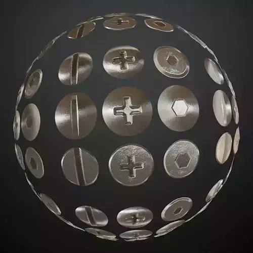 This material simulates a dense bundle or collection of loose screws, bolts, and hardware. Unlike a structured plate, this texture captures the depth and complexity of overlapping metal components, making it perfect for filling toolboxes, workshop bins, construction site debris, or as a decorative industrial background. The Height and Normal maps provide extreme topographical detail, capturing the intricate threads of the screws and the random orientation of the heads. The Roughness map ensures that light glints off the various angles of the metal pile, creating a convincing sense of volume and metallic clutter. This material is provided in 2K resolution. If you require high-quality material in 4K, 8K, or 16K, please contact us. A Blender native file is provided along with a separate PBR textures folder that can be used in any 3D software, including 3ds Max, Cinema 4D, Maya, game engines like Unreal Engine and Unity, and texture painting software such as Substance Painter.