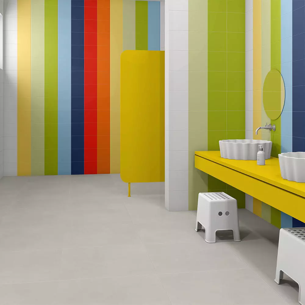 Kid‑friendly bathrooms, schools, retail displays, signage, and stylized games requiring vibrant ceramic color panels.