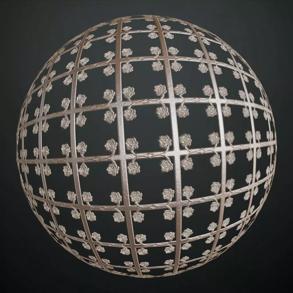 This material features an intricate decorative rose pattern designed for ornamental guards, screens, or architectural fencing. It is provided in 2K resolution. If you require high-quality material in 4K, 8K, or 16K, please contact us. A Blender native file is provided along with a separate PBR textures folder that can be used in any 3D software, including 3ds Max, Cinema 4D, Maya, game engines like Unreal Engine and Unity, and texture painting software such as Substance Painter.