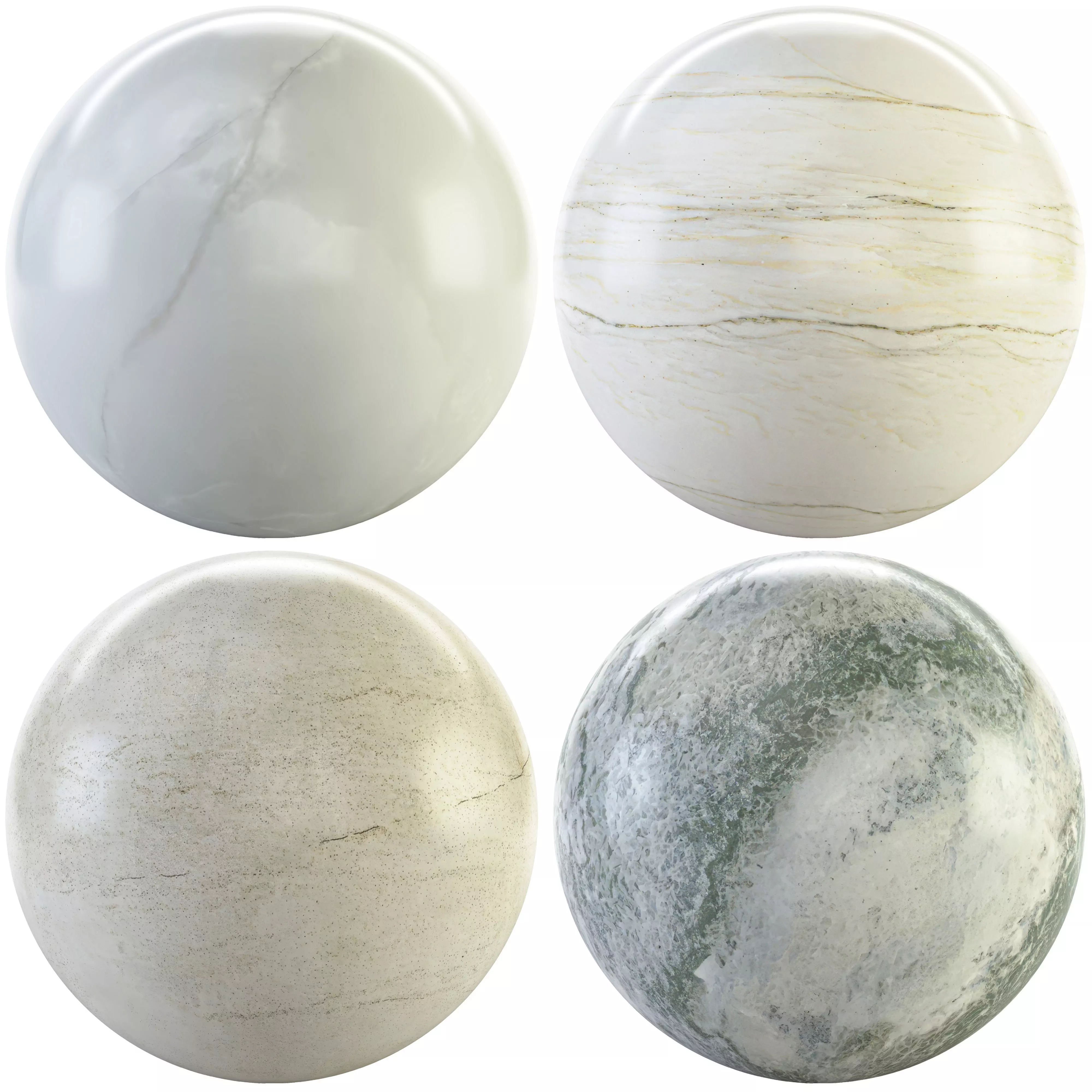 6 White Macaubas Marble texture with Glossiness Mapss