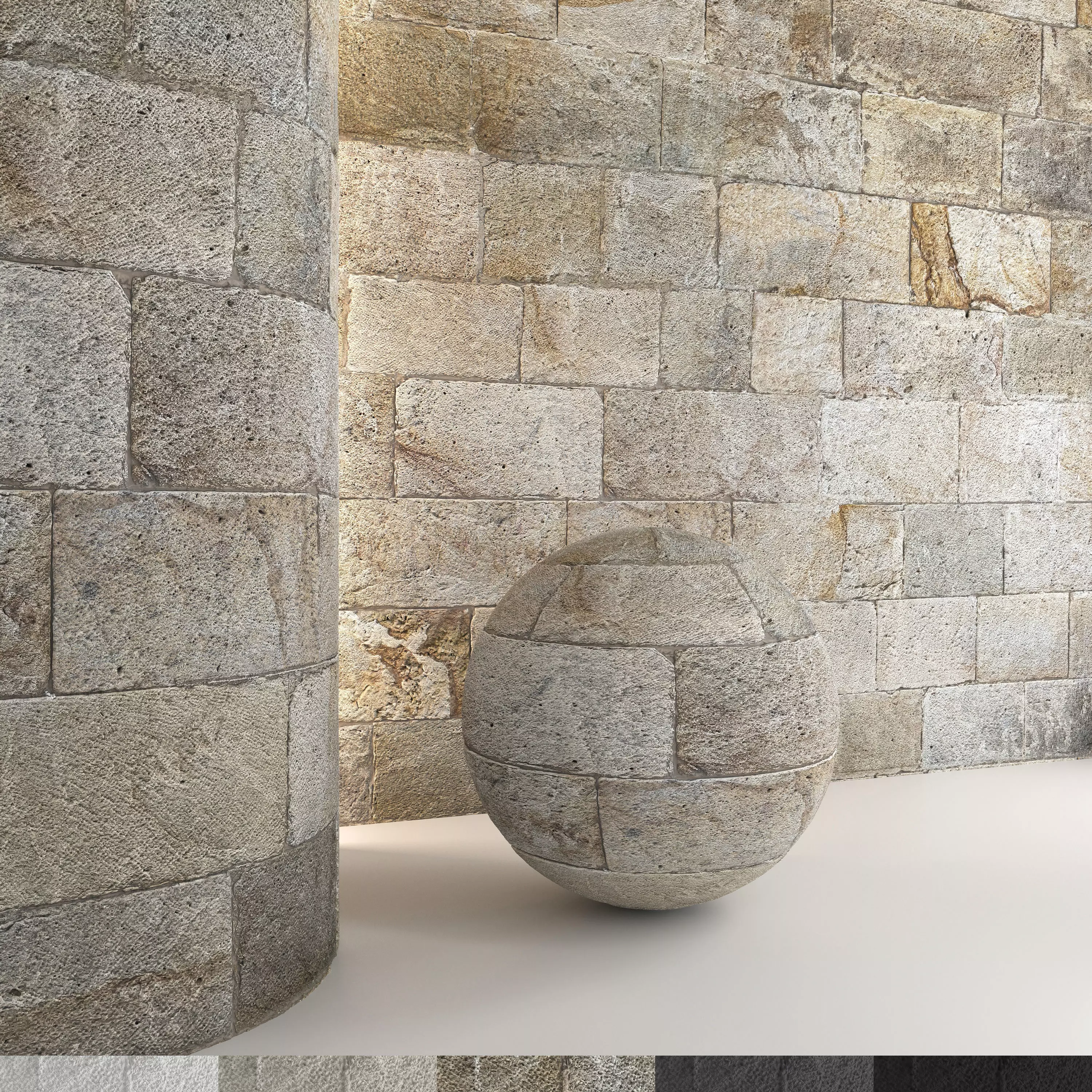 Stone wall 255 stone wall materials and 3d model. Light and dark material options.High quality material and textures. Detailed enough for close-up rendering.