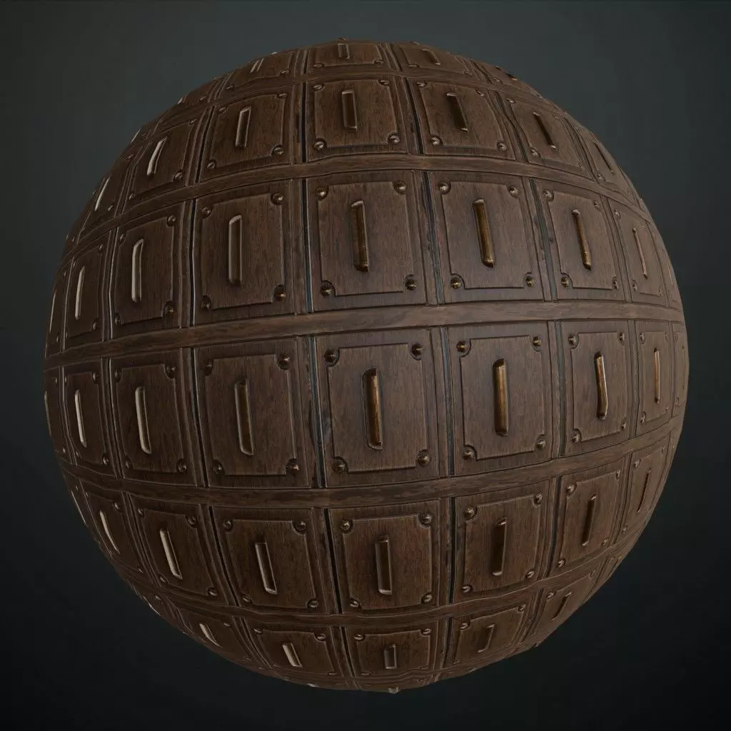 This is a PBR Texture Pack of a Studded Decorative Wood Panel. All the Maps Such as BaseColor / Normal / Roughness / Height / Metallic / Opacity are provided as per Requirement. This material is provided in 2K resolution (If you need High Quality Material 4K / 8K or 16K make sure to contact us). Blender Native file is Provided and a Separate PBR Textures folder is also provided That can be used in any 3D software (3ds Max, Cinema 4D, Maya, game engines like Unreal Engine and Unity, and texture painting software like Substance Painter etc.). You are welcome to visit our profile and explore thousands of PBR Materials And This Material is part of Our Best Product 5000+ PBR Asset Browser You can get that too. https://www.cgtrader.com/3d-models/textures/architectural-textures/5000-pbr-materials This asset features a sophisticated dark wood paneling design, where each rectangular section is accented by a central metallic handle and corner rivets. The rich wood grain and the worn metallic hardware give this texture a high-end, antique look. It is an ideal choice for luxury office interiors, library walls, vintage luggage or trunks, and ornate architectural details.