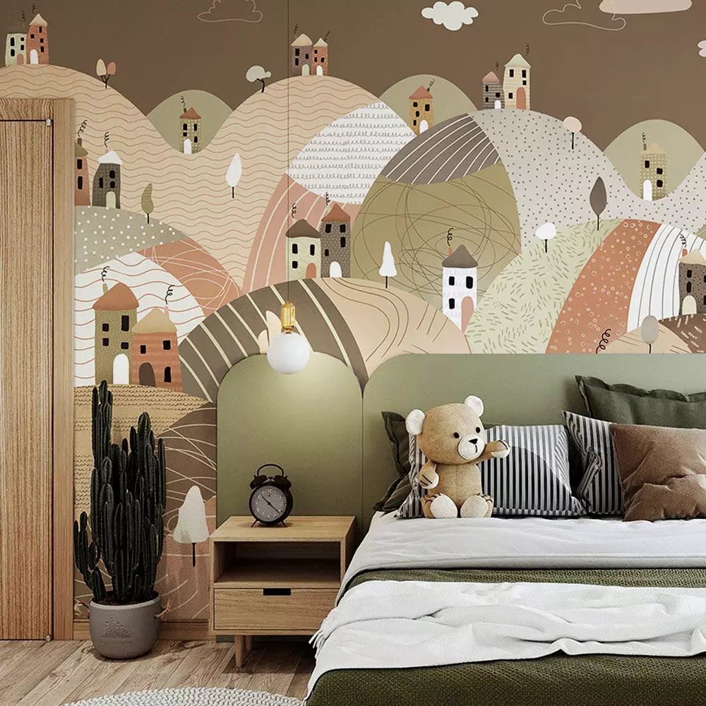 Transform children’s rooms and cozy interiors with a calm storybook focal wall using this Whimsical Hills & Tiny Houses Wallpaper Texture Pack. Layered rolling hills, playful trees, and charming house silhouettes create a friendly landscape that pairs beautifully with natural wood, terracotta accents, and soft textiles for warm, modern spaces. The pack includes three coordinated colorways—Terracotta & Green, Pastel Meadow, and Cocoa Sunset—so scenes can switch palettes without altering composition or mood. Each variant ships as seamless 4K textures with a complete metal/rough PBR set: BaseColor (sRGB), Normal (OpenGL), Roughness, Ambient Occlusion, and Height/Displacement. Maps are aligned, consistently named, and optimized for large wall tiling, ready for Blender, 3ds Max, Maya, Cinema 4D, Unreal Engine, and Unity. Start at 1 m per UV unit and adjust to framing for the ideal balance between pattern density and readable village details. The subtle paper grain and crisp edges hold up in close‑ups while remaining soothing at distance—ideal for photoreal archviz, VR/AR walkthroughs, and real‑time configurators. Original artwork created specifically for visualization; no third‑party stock elements. Include multiple preview angles and a material‑ball per colorway to increase listing visibility and clien