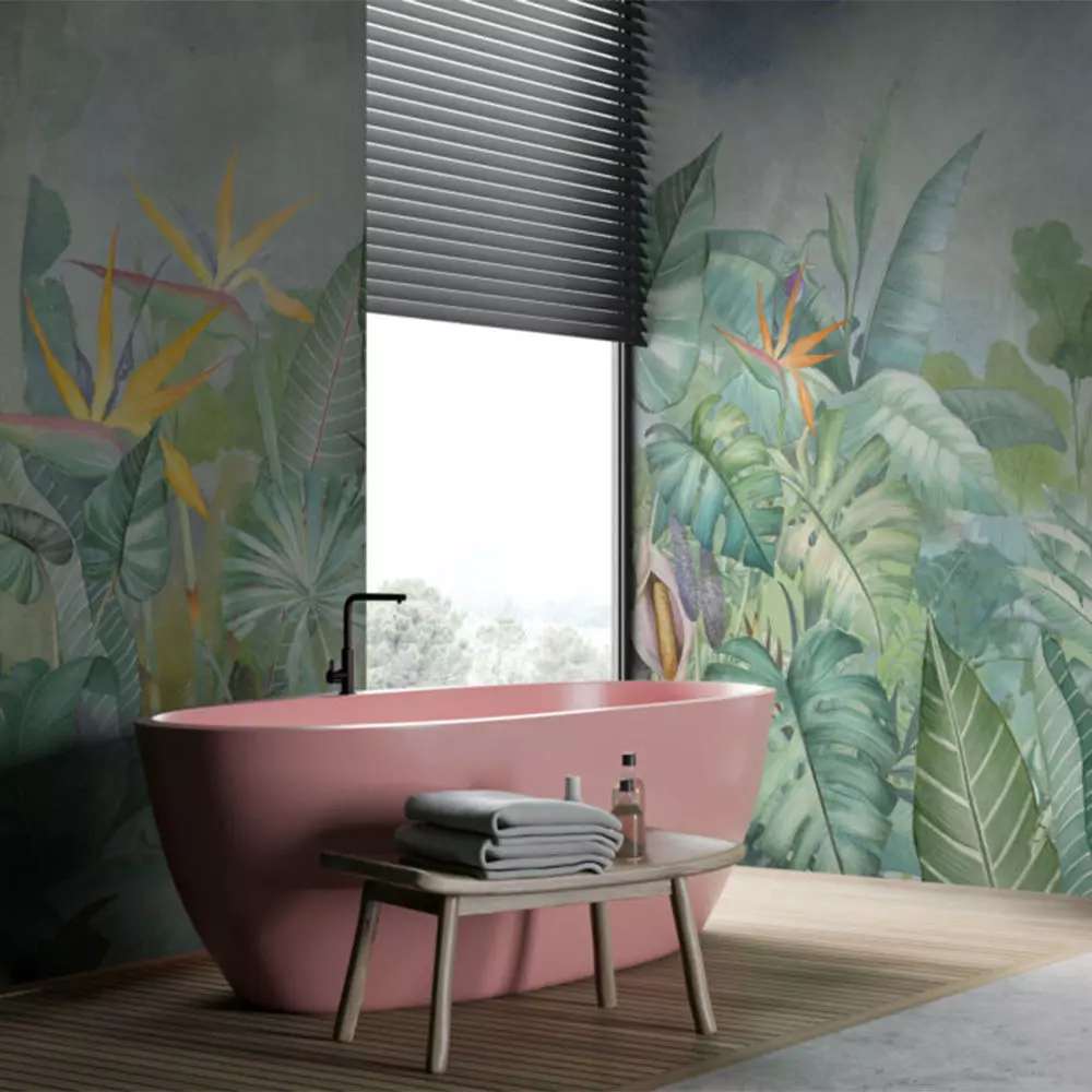 This seamless texture paints a vibrant tropical canopy in soft watercolor layers—banana leaves, monstera, and bird‑of‑paradise—set against a gently mottled plaster ground, ideal for spas, bathrooms, cafés, and stylized game worlds. The albedo is shadow‑free with balanced greens, teals, and warm flower accents, preserving analog wash textures while remaining easy to hue‑shift for different moods. Normal and height maps capture paper/plaster grain, delicate brush ridges, and leaf vein relief so raking light reveals convincing depth without harsh artifacts. Roughness is tuned for a matte limewash finish with lightly smoother glaze passes to provide tasteful specular breakup and avoid plastic sheen. Delivered in 4K and 8K square resolutions, the set tiles cleanly on both axes to cover expansive walls with minimal repetition. Built for a metal/rough PBR workflow (metal 0) and compatible with Blender, 3ds Max, Maya, Cinema 4D, Unreal Engine, and Unity. Recommended setup: Base Color Albedo (sRGB), Normal tangent space, Roughness linear, AO optional multiply, Height for parallax/displacement on hero shots. Organized folders, lossless PNGs, and lightweight JPEG previews ensure fast import and look‑dev. Perfect for biophilic interiors and educational or resort‑style scenes needing lush, welcoming energy.