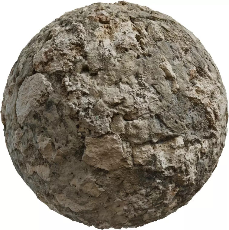 This is a highly realistic broken rock cliff stone PBR texture scanned and processed for professional level environment creation. The material features naturally fractured rock formations, deep cracks, chipped stone chunks, rugged surface cavities and organic weathering details. Perfect for creating realistic mountains, canyon walls, rocky cliffs, ancient ruins, desert rocks, old temple walls, beach rocky formations, and any terrain where realistic stone detail is needed.