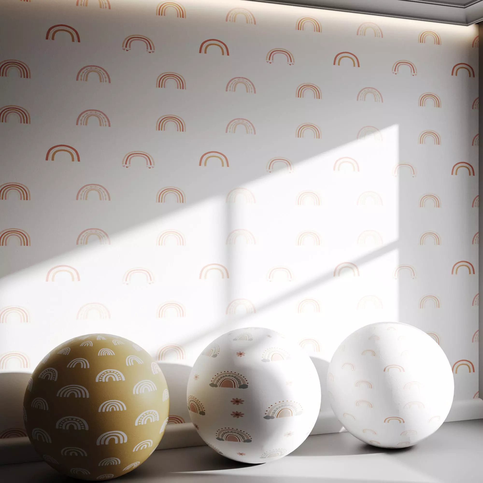 Tags: rainbow wallpaper, boho kids room, nursery decor, minimalist rainbow, earthy wallpaper, baby room wall, modern kids wallpaper, pastel wall pattern, Scandinavian nursery, cute rainbow texture, children’s wall decor, playful pattern, hand-drawn rainbow, abstract rainbow art, wall mockup, vector rainbow design, joyful interior, neutral tones, soft palette, whimsical decor