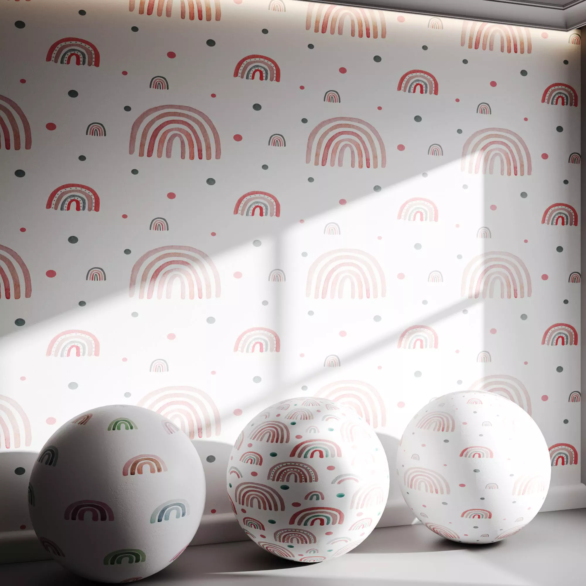 Name: Wallpaper 46Type: modelFormat: 3Ds Max 2016Export: FBX, OBJRender: Corona (10)Polys: 4626Verts: 4638Units: MillimetersDimension: 4000.17 x 1106.51 x 3011.62Description:A cheerful pastel rainbow-themed wallpaper design, perfect for kids' rooms or playful interiors. The soft gradient tones and watercolor texture give it a gentle, whimsical charm.