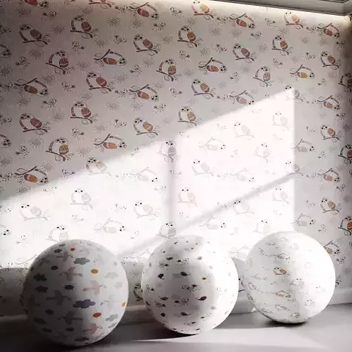 Name: wallpaper 75Type: modelFormat: 3Ds Max 2016Export: FBX, OBJRender: Corona (10)Polys: 4626Verts: 4638Units: MillimetersDimension: 4000.17 x 1106.51 x 3011.62Description:Wallpaper 75 features an adorable hand-drawn owl and bird illustration pattern, perfect for creating a cozy, storybook atmosphere in children’s rooms or nursery interiors. The design presents wide-eyed owls perched on branches, surrounded by minimal sun and cloud motifs, rendered in warm earthy tones and soft linework. This seamless wallpaper evokes a rustic charm while maintaining a whimsical, playful character. The additional pattern variations include simplified bird icons and cloudy sky arrangements, making it highly versatile for modern or nature-themed decor. Ideal for woodland-themed nurseries, bedtime reading corners, or playful wall features in boutique children's spaces.