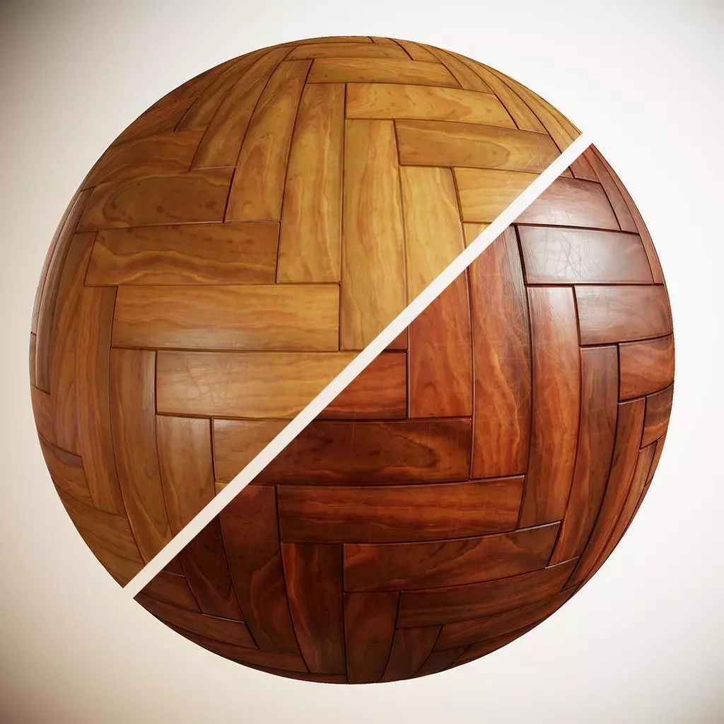 Dark and Light wood parquet . Contains 2048x2048 PNG textures such as Base Color, Normal. Height, Roughness, AO. Materials are ready for PBR render, tessellation and parallax occlusion.