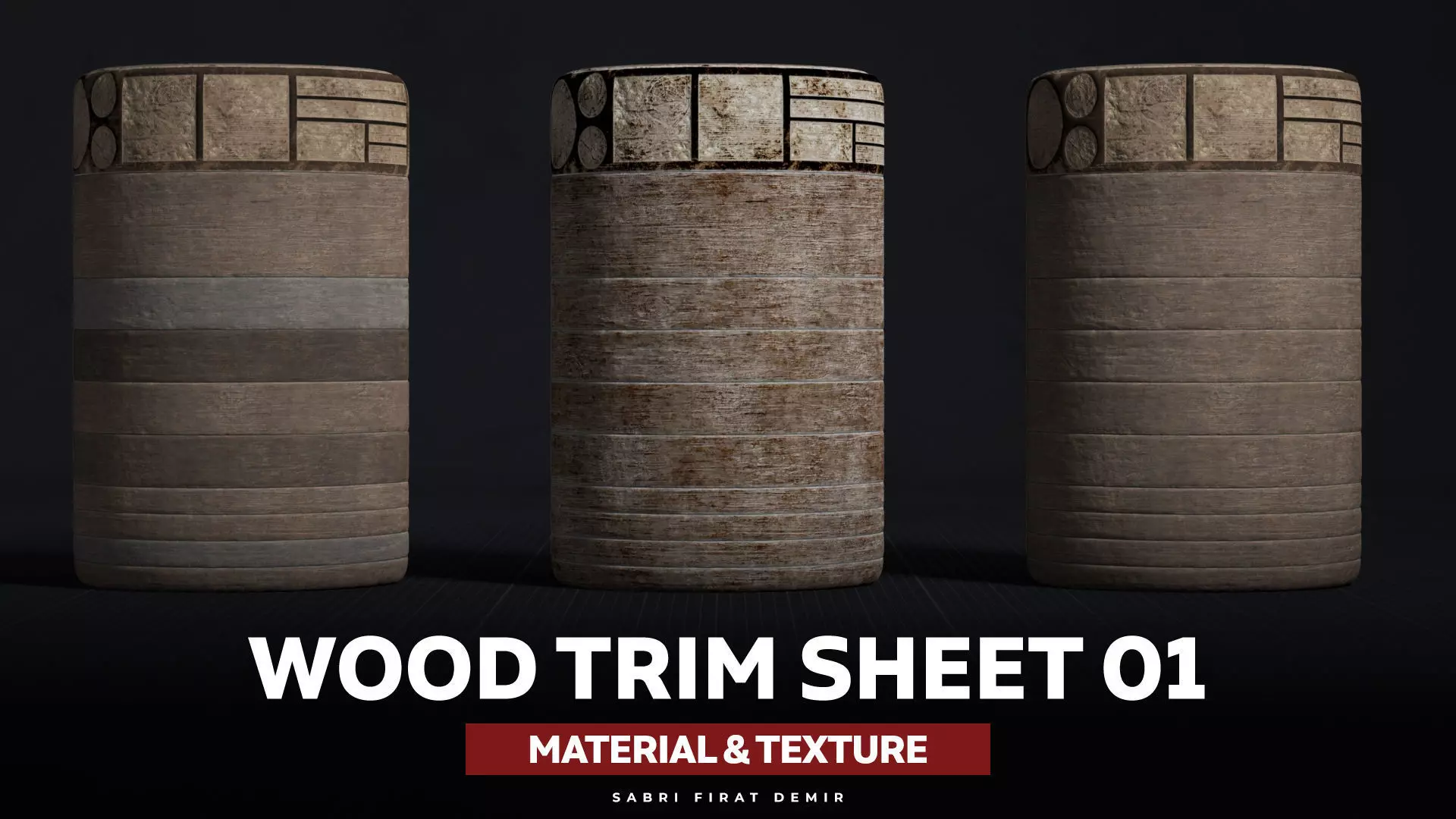 Designed by SFDEMIR (Sabri Fırat Demir), this material pack is a valuable addition to your 3D asset library. Enhance your projects with high-quality wood trim textures today!