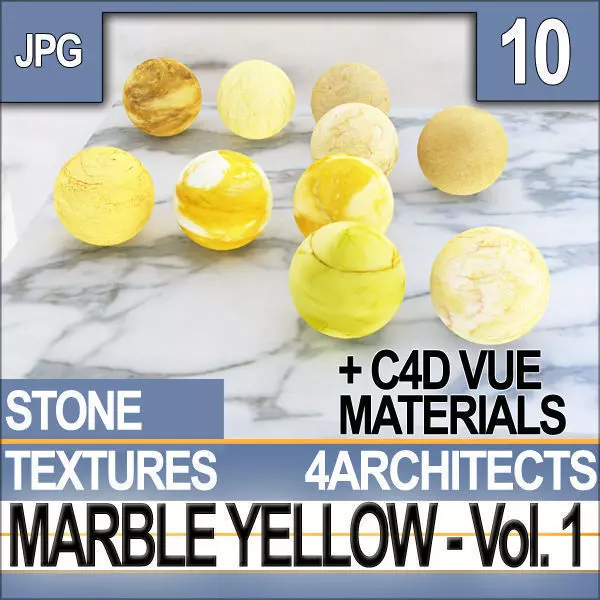 10 Hi-Quality PhotoReal Seamless Scalable Textures, 10 Cinema4D pre-set Materials, 10 VUE pre-set Materials with 3 Special Function Rendering Materials for Reflection-SubSurfaceScattering. Marble Rendering Guide. TEXTURES & C4D-VUE MATERIALS