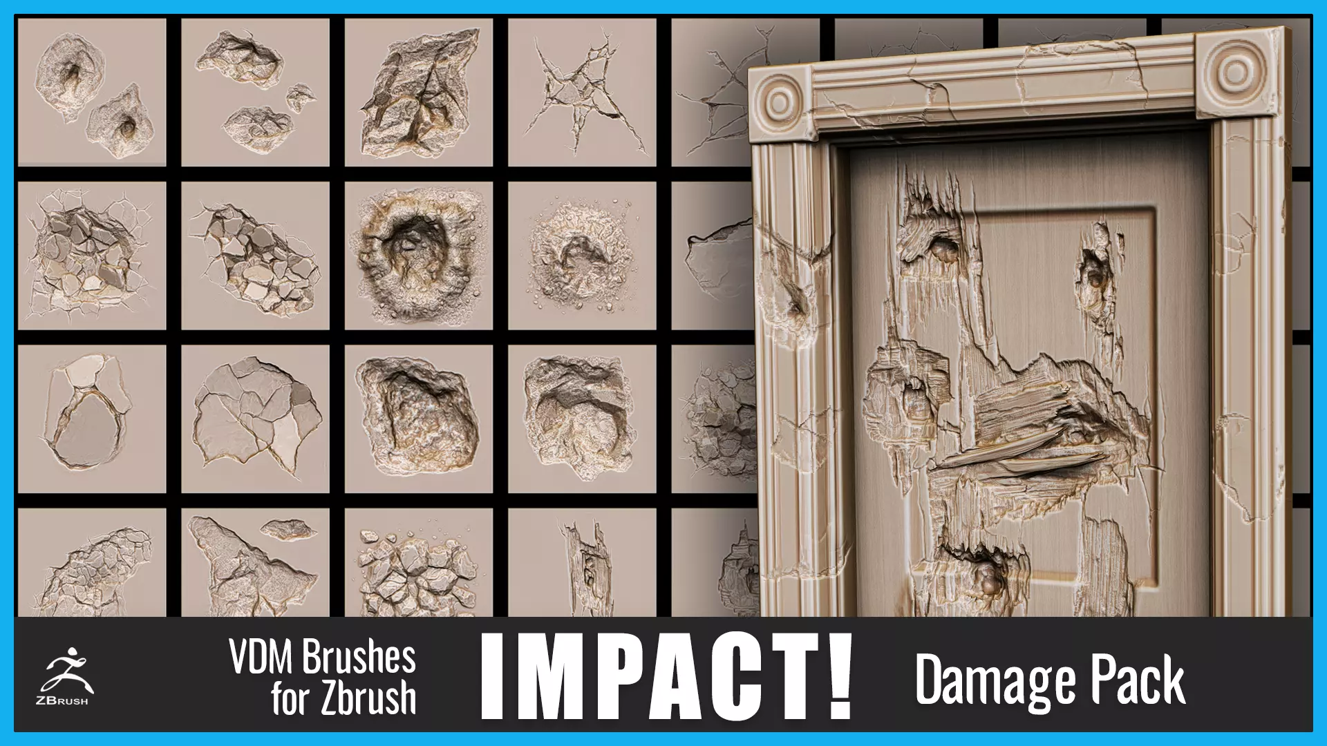 The pack contains high detailed realistic Impact damage. These brushes can be used in 3d projects and entertainment design.