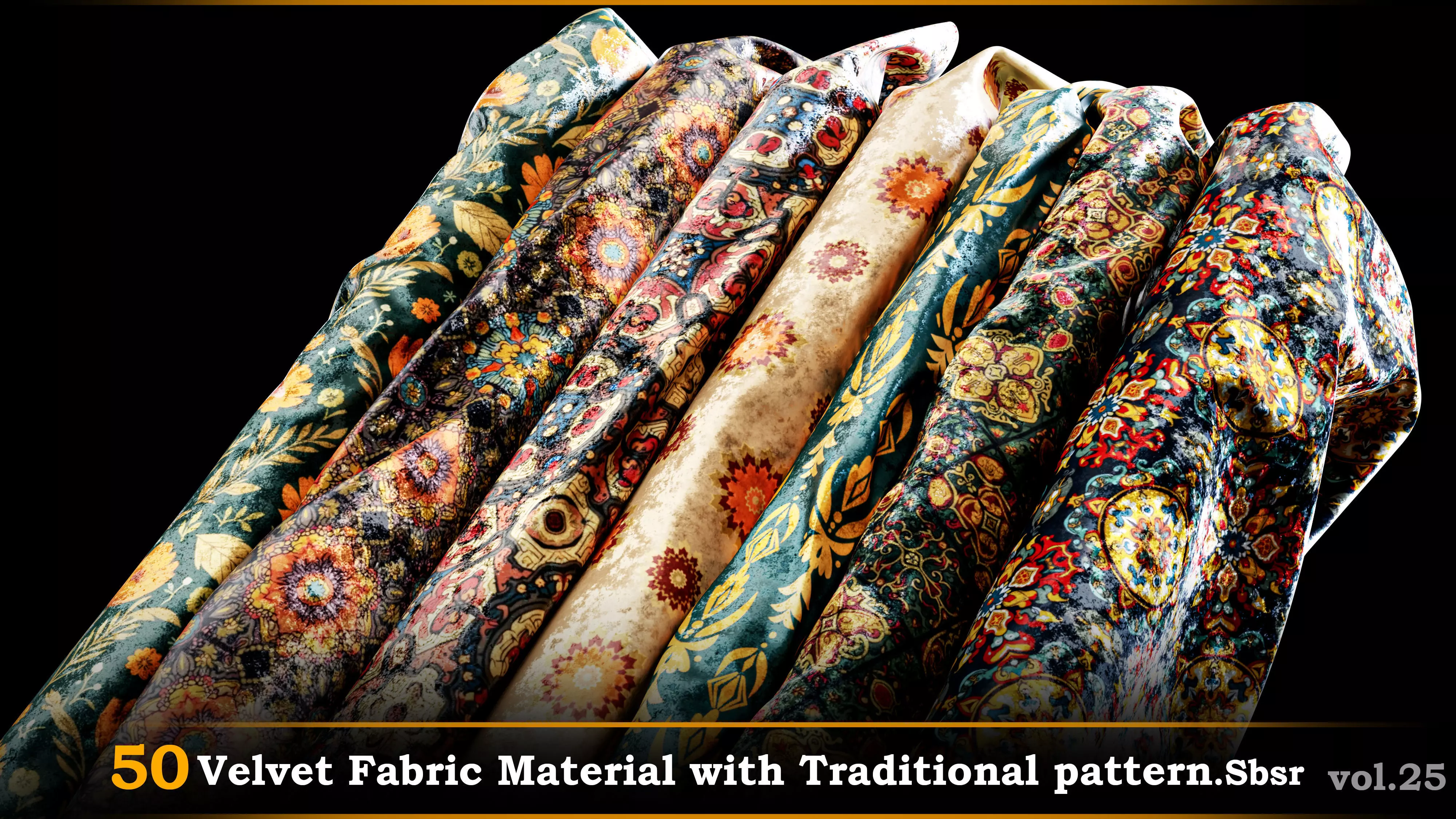 A pack of 50 Velvet Fabric Material With Traditional pattern.SBSR