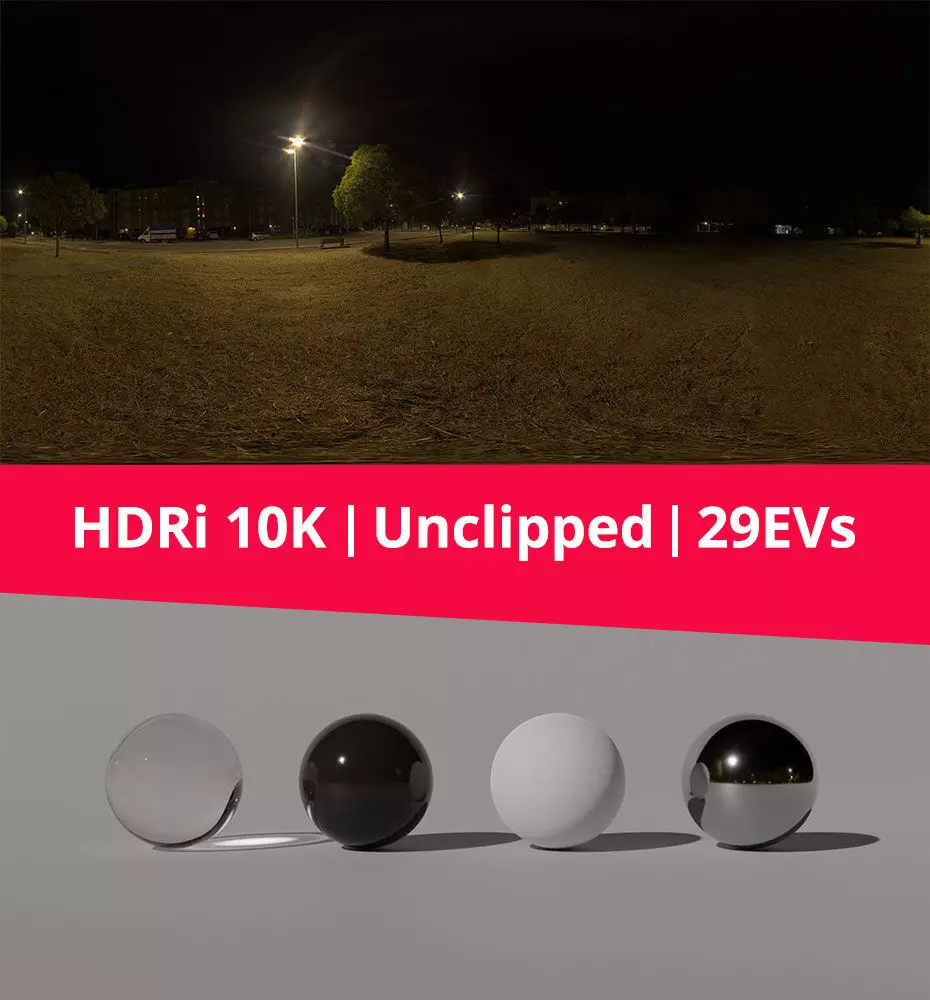 This HDRi is used as image-based lighting in your renderings. It has a dynamic range of 29 EVs.