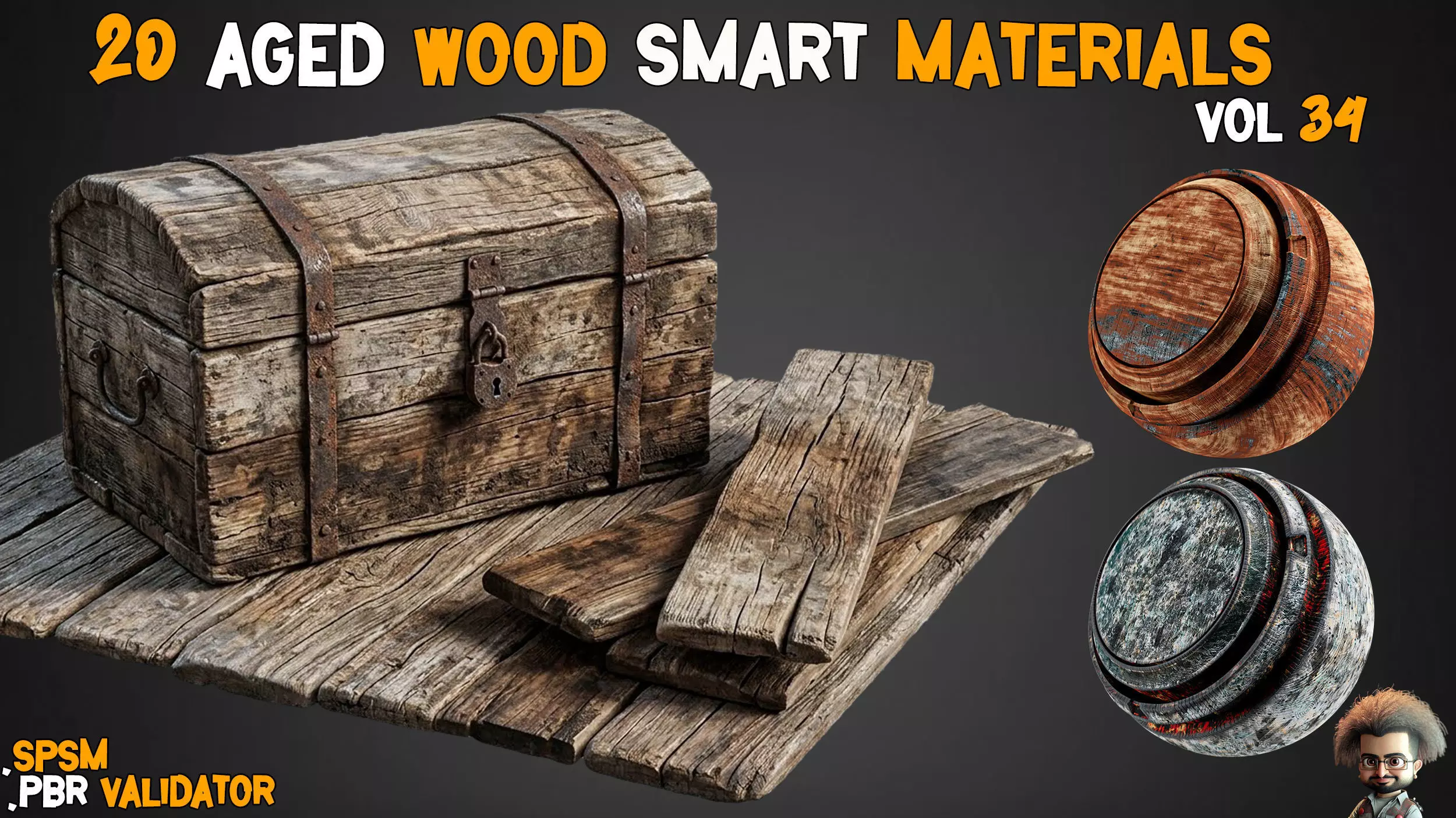 20 Aged Wood Smart Materials Format SPSM for Substance Painter 4K seamless PBR textures Fully layered and customizable Clean file organization for fast workflow
