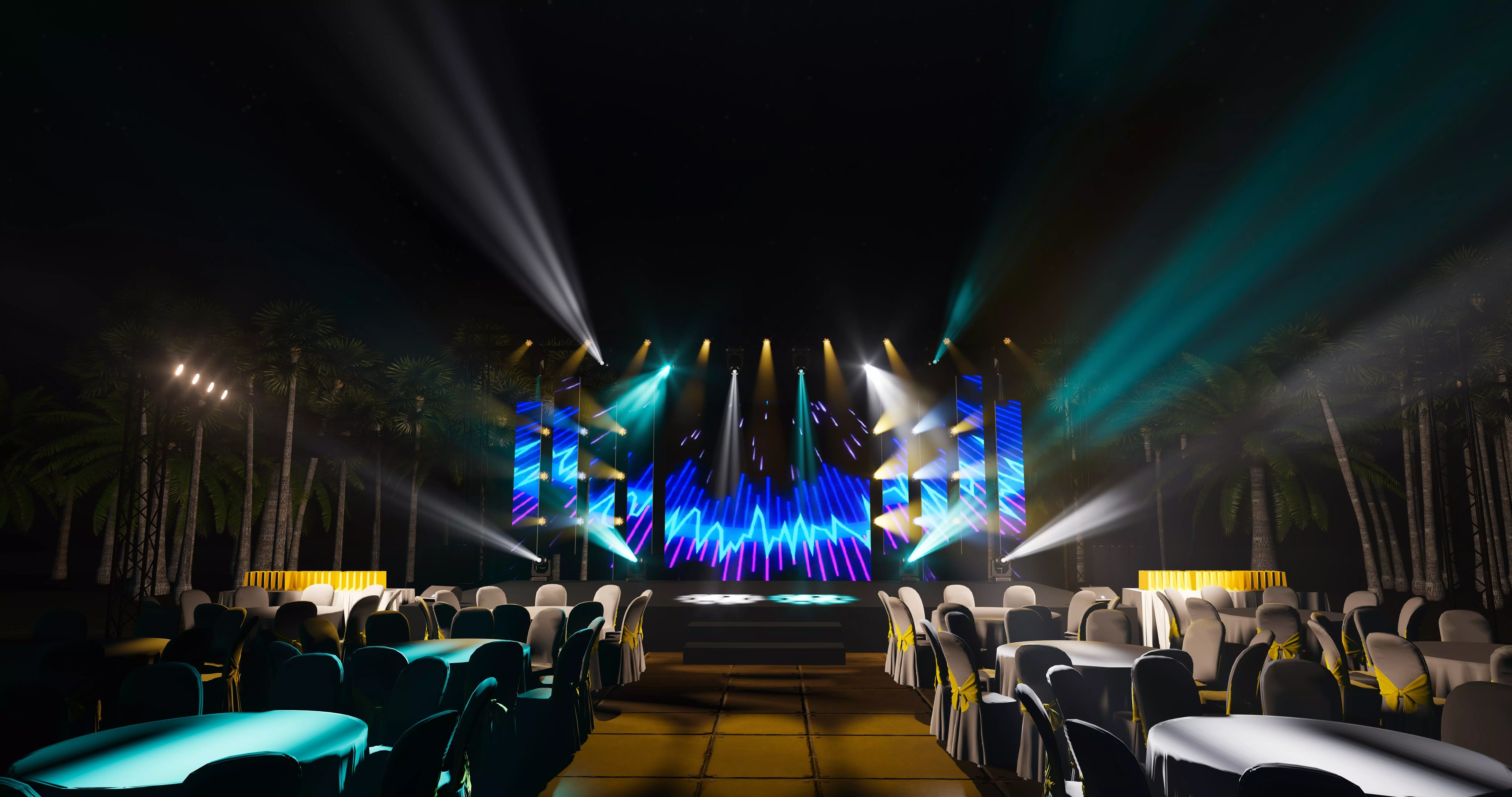 - Led screen: .6mhigh x 3m width, visual led as seen.