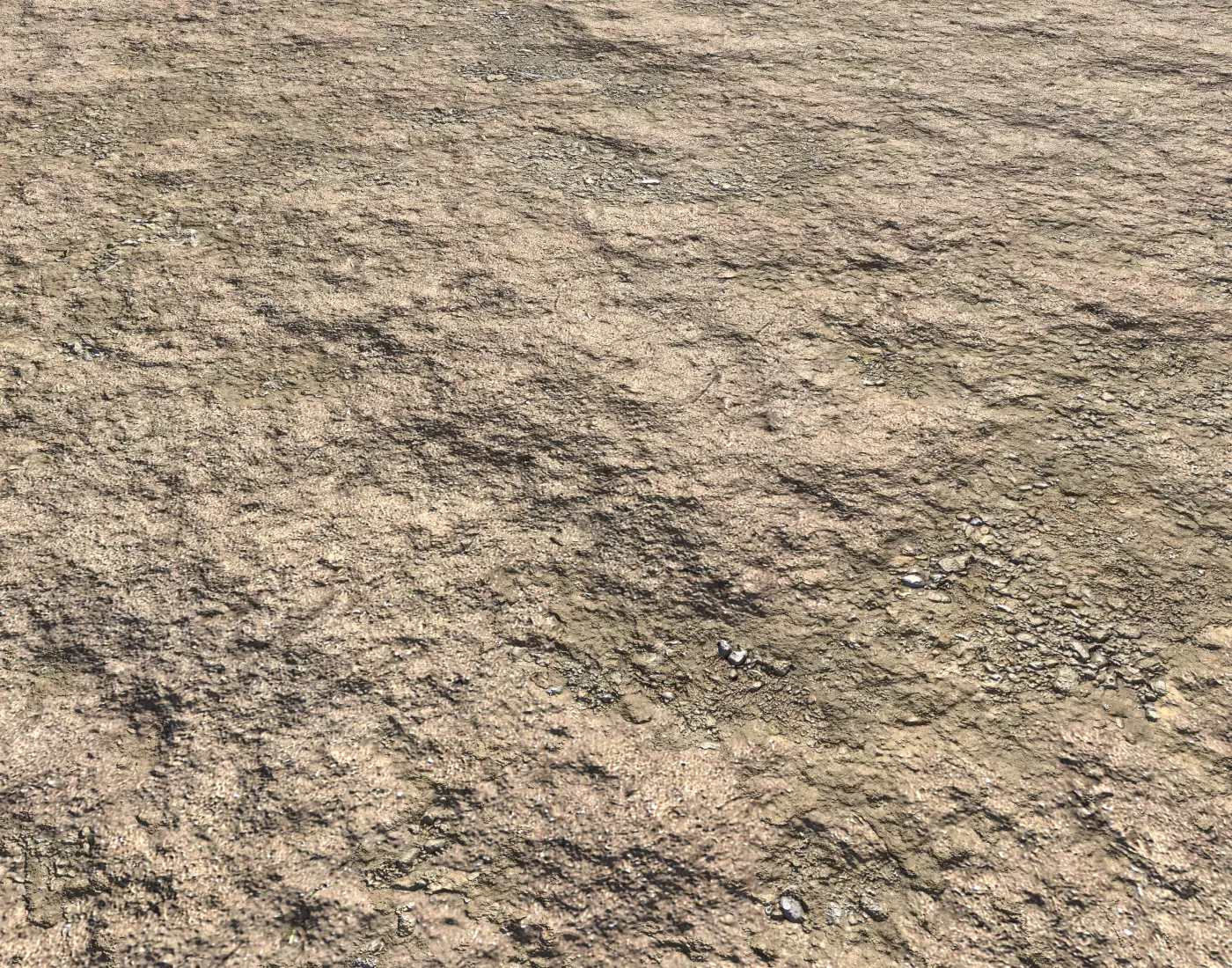 Arid sandy ground with gravel. 4096px seamless textures with Albedo, Normal, Displacement, Roughness, Metalness, AO.