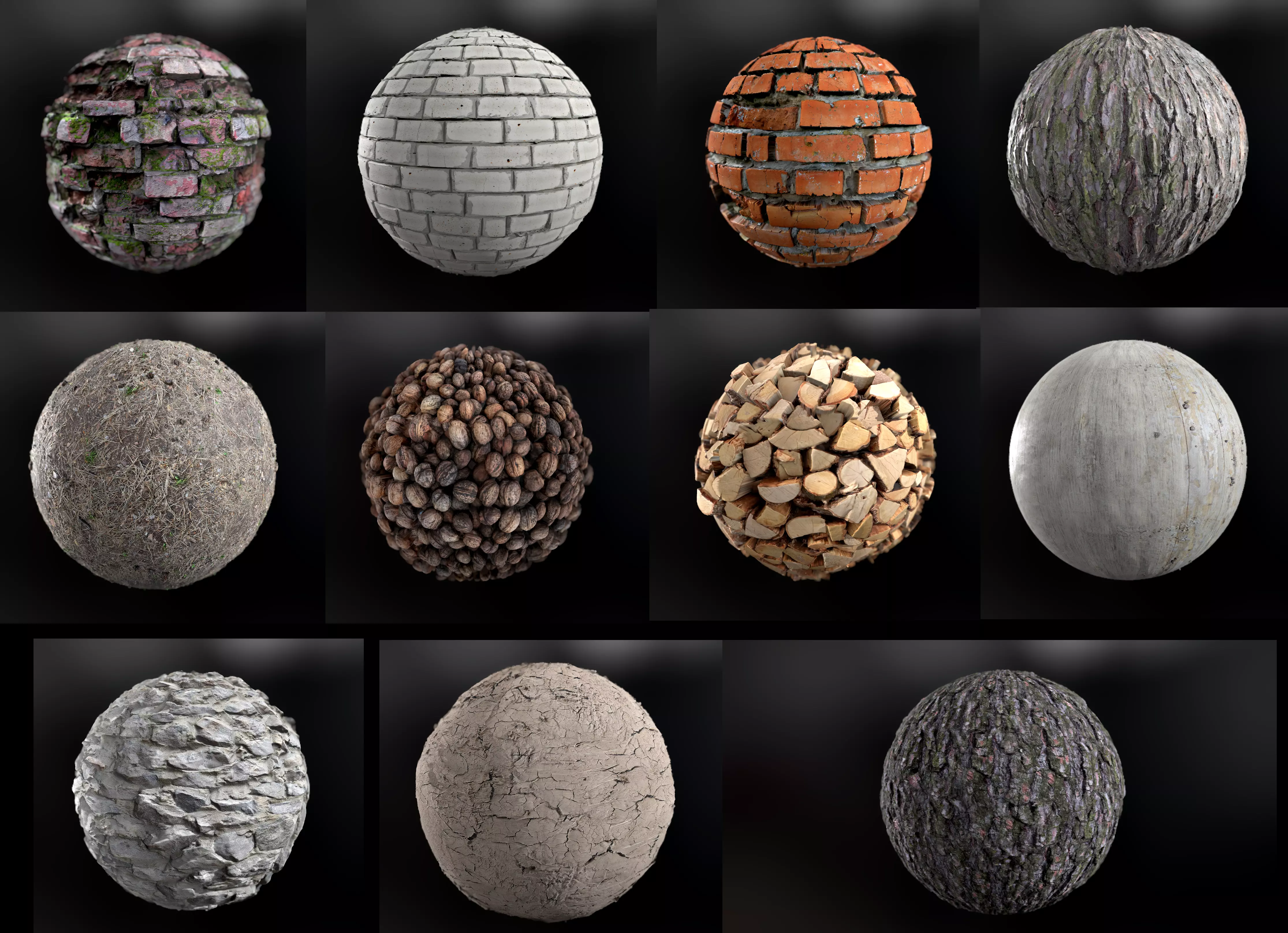 A set of different materials created using a real material scanner