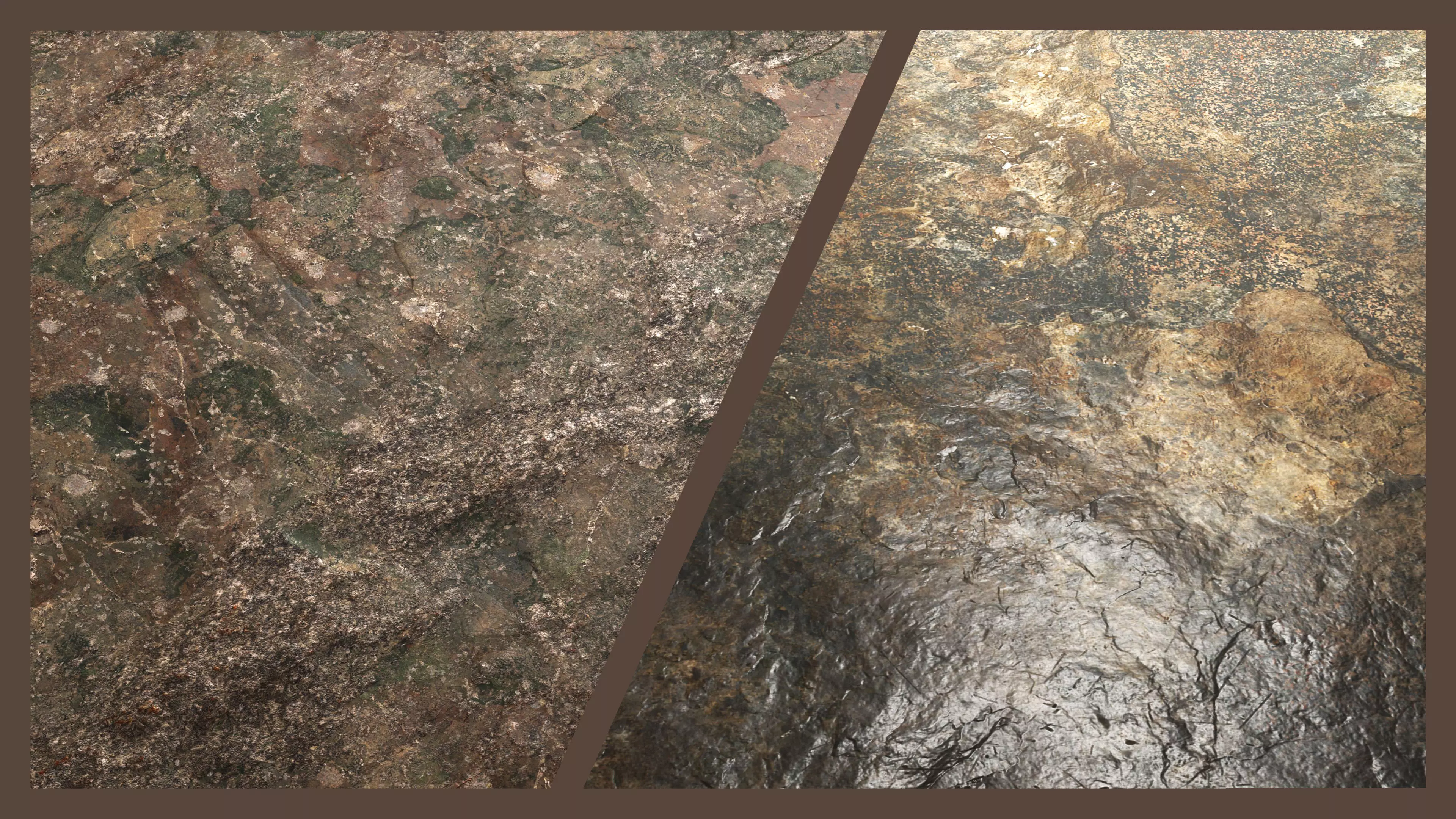 Both textures are created using a full PBR workflow at 8K and 4K resolutions, capturing subtle surface variations, natural wear, cracks, and realistic roughness changes. The textures are ideal for adding lifelike detail to rocks, stone surfaces, and terrain elements in both close-up renders and large-scale scenes.